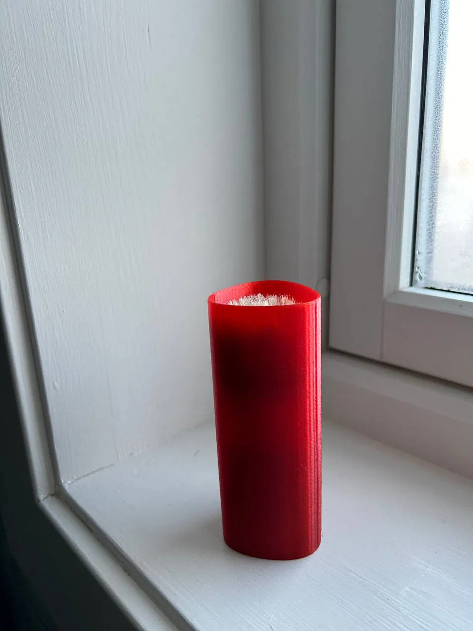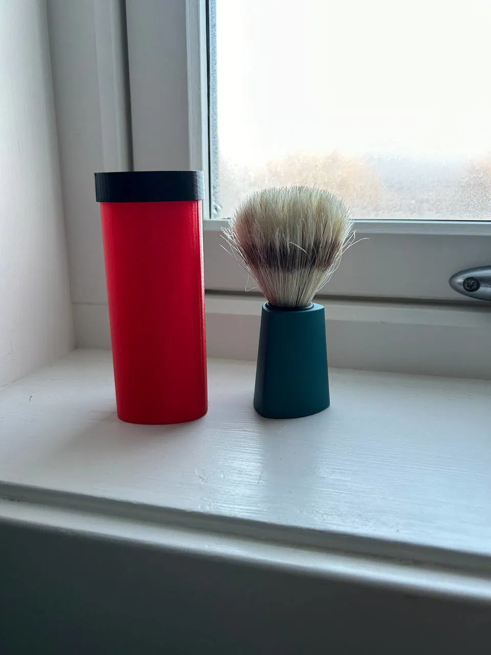 Hộp đựng cọ cạo râu NOM Gustav, với nắp ép vừa và lỗ thông hơi ở đáy. Nếu cần khít hơn, bạn có thể điều chỉnh kích thước nắp.
