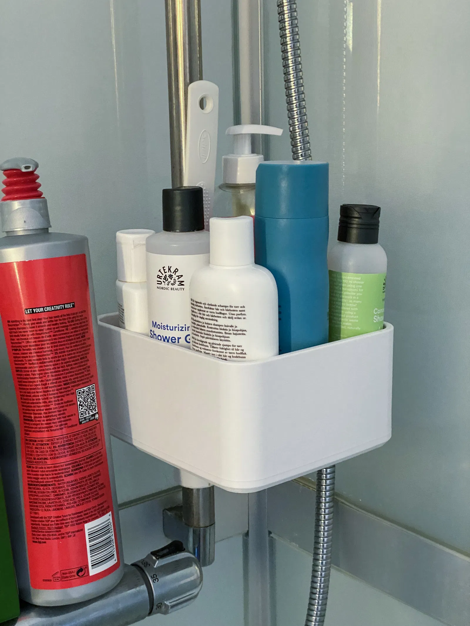 Kệ/rổ cơ bản của mình cho mấy chai dầu gội trong phòng tắm nè. Bạn có thể tự do chỉnh sửa bản thiết kế này nếu dùng Onshape.