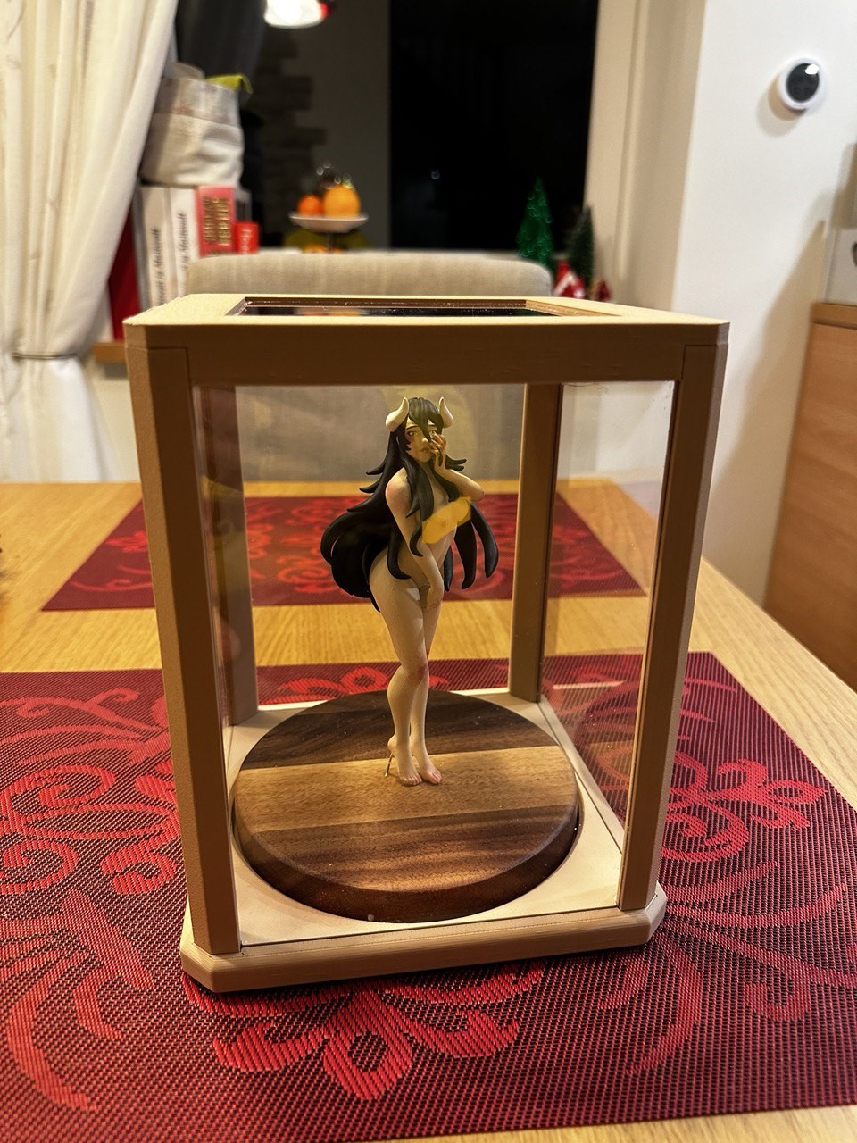 Để in, tôi đã sử dụng Bambulab PLA Mate. Các thành mỏng làm từ polycarbonate dày 2 mm, còn đế gỗ là gỗ óc chó Mỹ. Mô hình được con gái tôi sơn đó :)