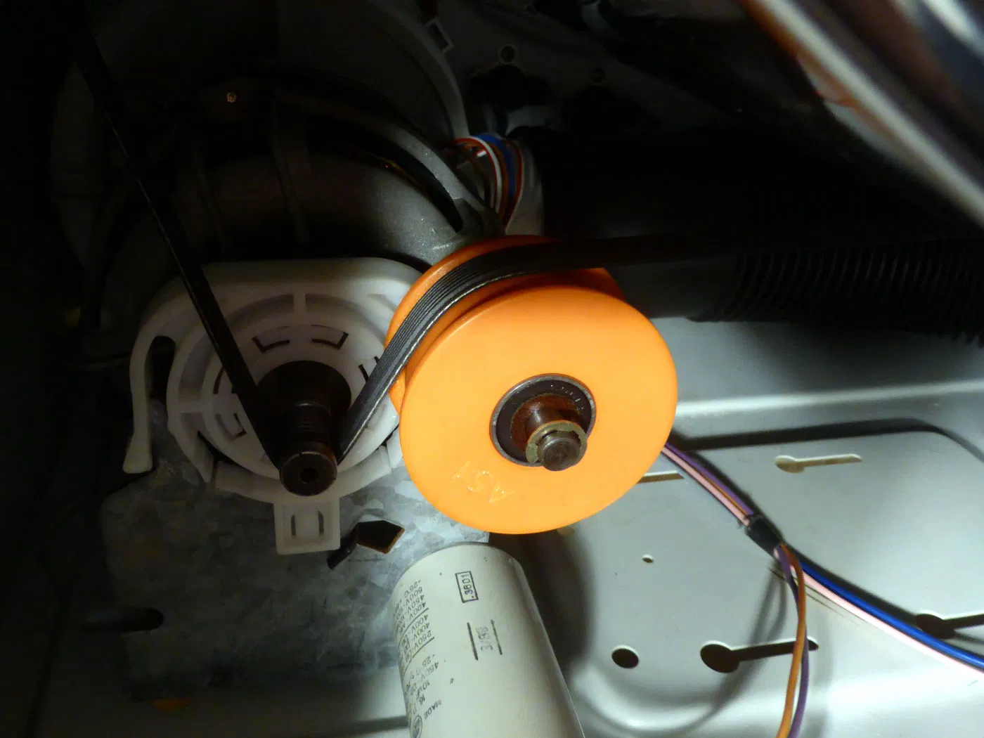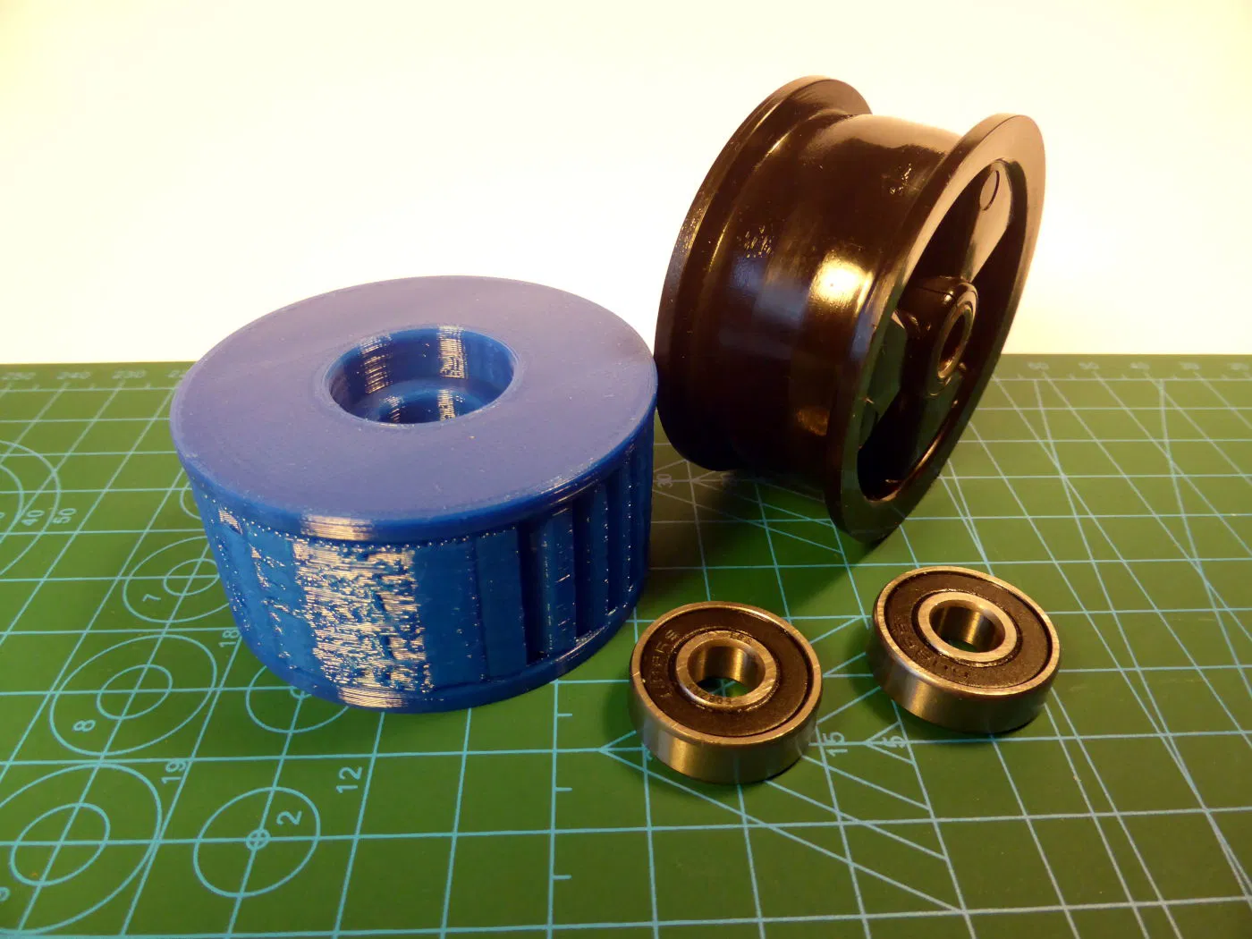 Đây là một phần thay thế cho ròng rọc J Racer, được sử dụng trong máy sấy phân giải điện phân. Vòng bi trượt đã được thay thế bằng hai vòng bi 608zz thường được sử dụng (vòng bi ván trượt). Lớp bao phủ lỗ trung tâm
