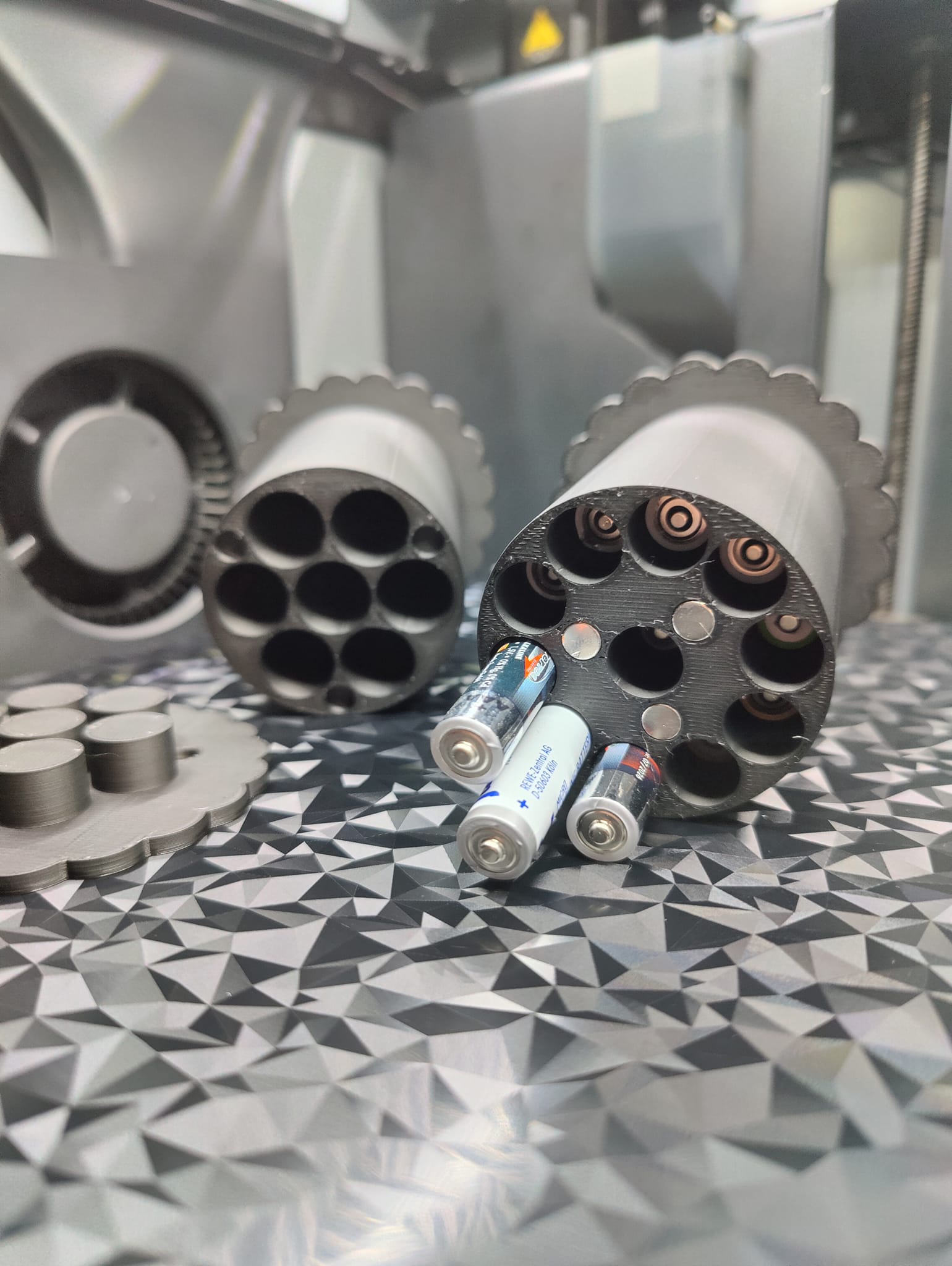Cục tạ spool gắn nam châm, dùng để bỏ pin AA hoặc AAA, giúp giữ spool không bị văng ra khỏi hộp AMS khi gần hết. Thích hợp cho spool có đường kính lỗ tối thiểu 50mm và chiều rộng tối đa 70mm. Phiên bản pin AA nặng 200g, bản AAA nặng 250g. Cần 6 viên nam châm 6x2mm.