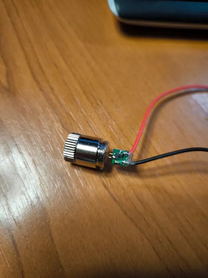 Tôi đã tháo dây cáp gốc ra khỏi module laser bằng cách mở module. Tôi lấy sợi cáp USB-C rẻ nhất và cắt ra khoảng 10cm, cáp chỉ có 2 lõi, phần đầu dây tôi làm sạch và hàn vào chỗ của dây gốc.