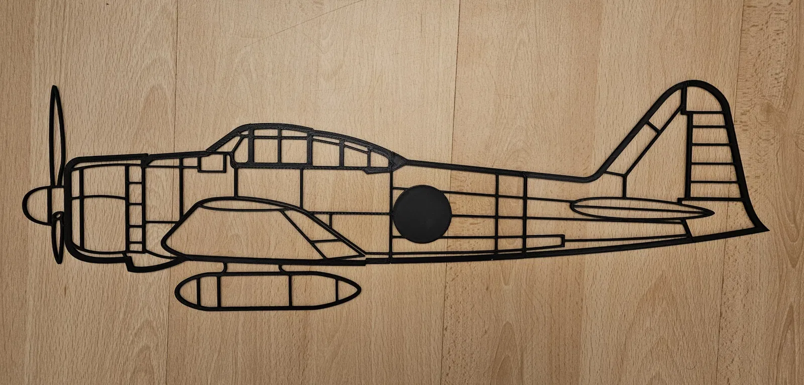 Tranh tường A6M2 Zero, cắt sẵn cho bản in lớn. Phiên bản này được chia tỷ lệ để tối đa hóa bản in MK3s và có thể thu nhỏ xuống khoảng 55%.