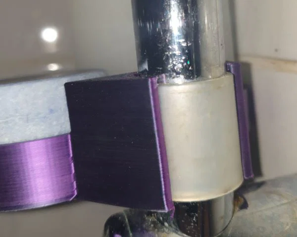 Cái vòng giữ cũ của tui thì cũng được, nó chỉ là một đoạn hình tròn hơi bè ra ở cuối, nên cái holder này nó ép lại và nó có thể giữ ở bất kỳ độ cao nào trên thanh. Nên có lẽ bạn sẽ cần tự tạo một cái vừa với của bạn - hoặc cho tui biết, tui sẽ cố gắng giúp nếu bạn không làm được.