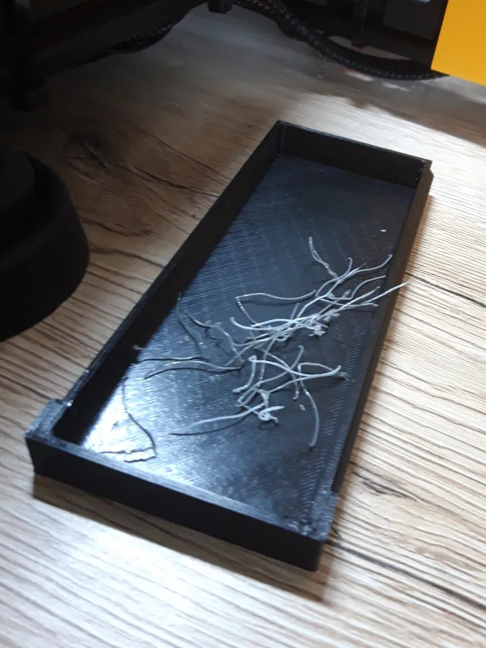 Khi in ở chế độ idex autopark, sẽ luôn có một lượng filamen thừa trên cả hai đầu nóng. Để tránh việc chúng nằm rải rác trên bàn làm việc, tôi đã làm những thùng rác Filament Poop Bins, phù hợp với cả hai bên của bàn nhiệt. Hầu hết lượng filamen thừa sẽ rơi vào thùng, có thể dễ dàng tháo ra và đổ rác.