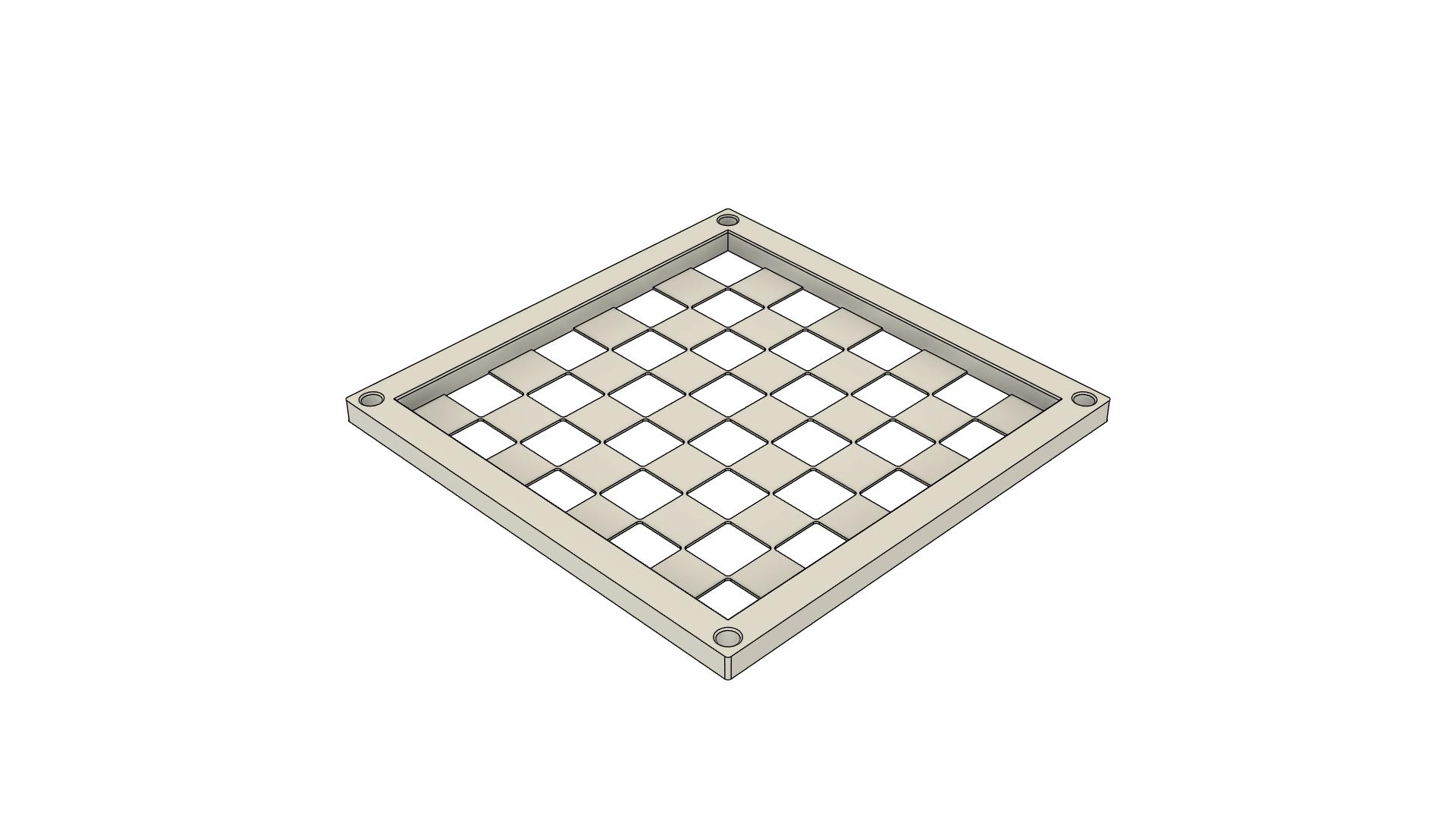 Bộ cờ vua không bao gồm trong mẫu này. Bạn có thể cần phải chỉnh kích thước cho bộ cờ vua của mình để nó vừa với các ô cờ của mẫu này. Mỗi ô cờ chỉ nhỉnh hơn 22mmx22mm một chút. Tốt nhất là nên làm tròn xuống còn 22mm cho đáy của mỗi quân cờ.