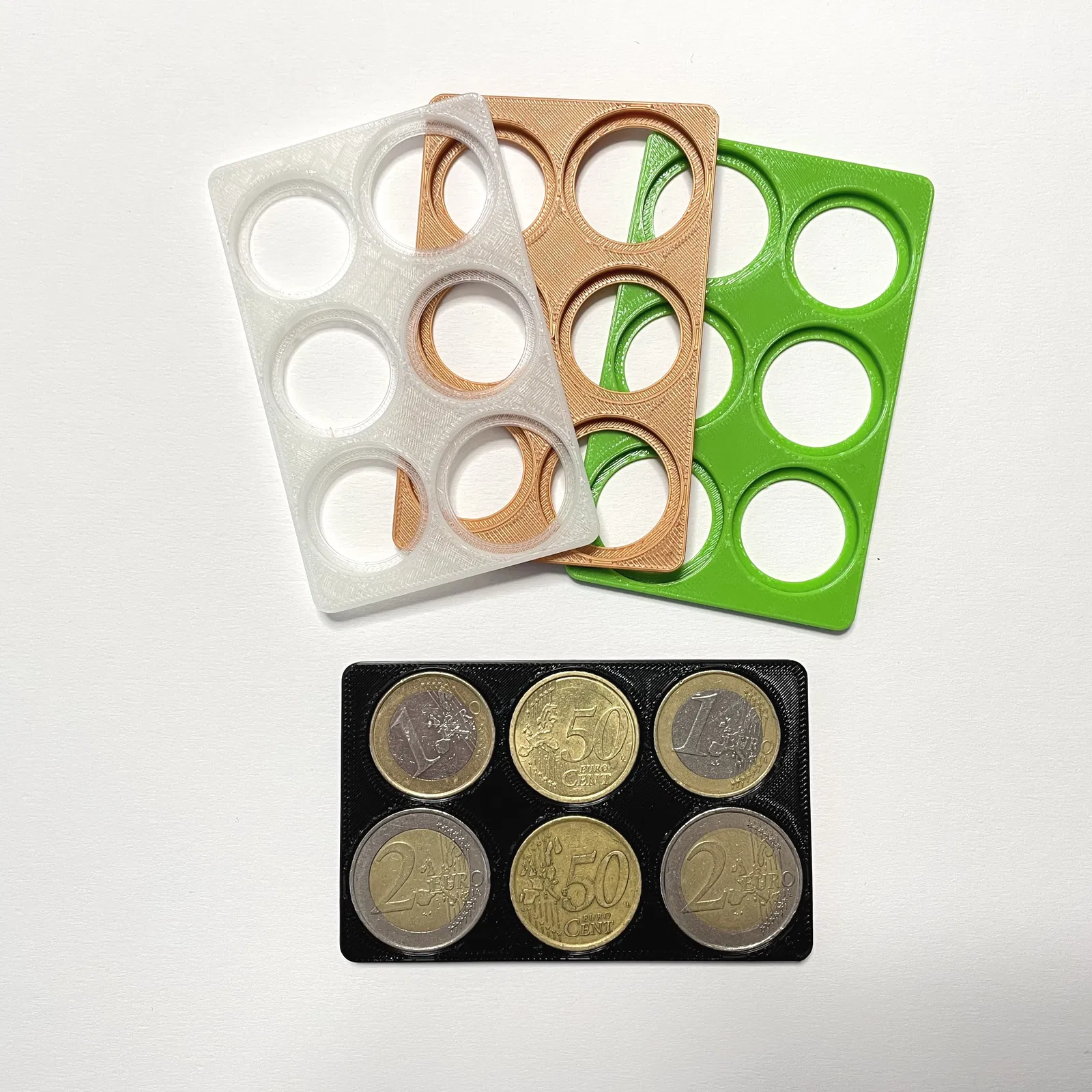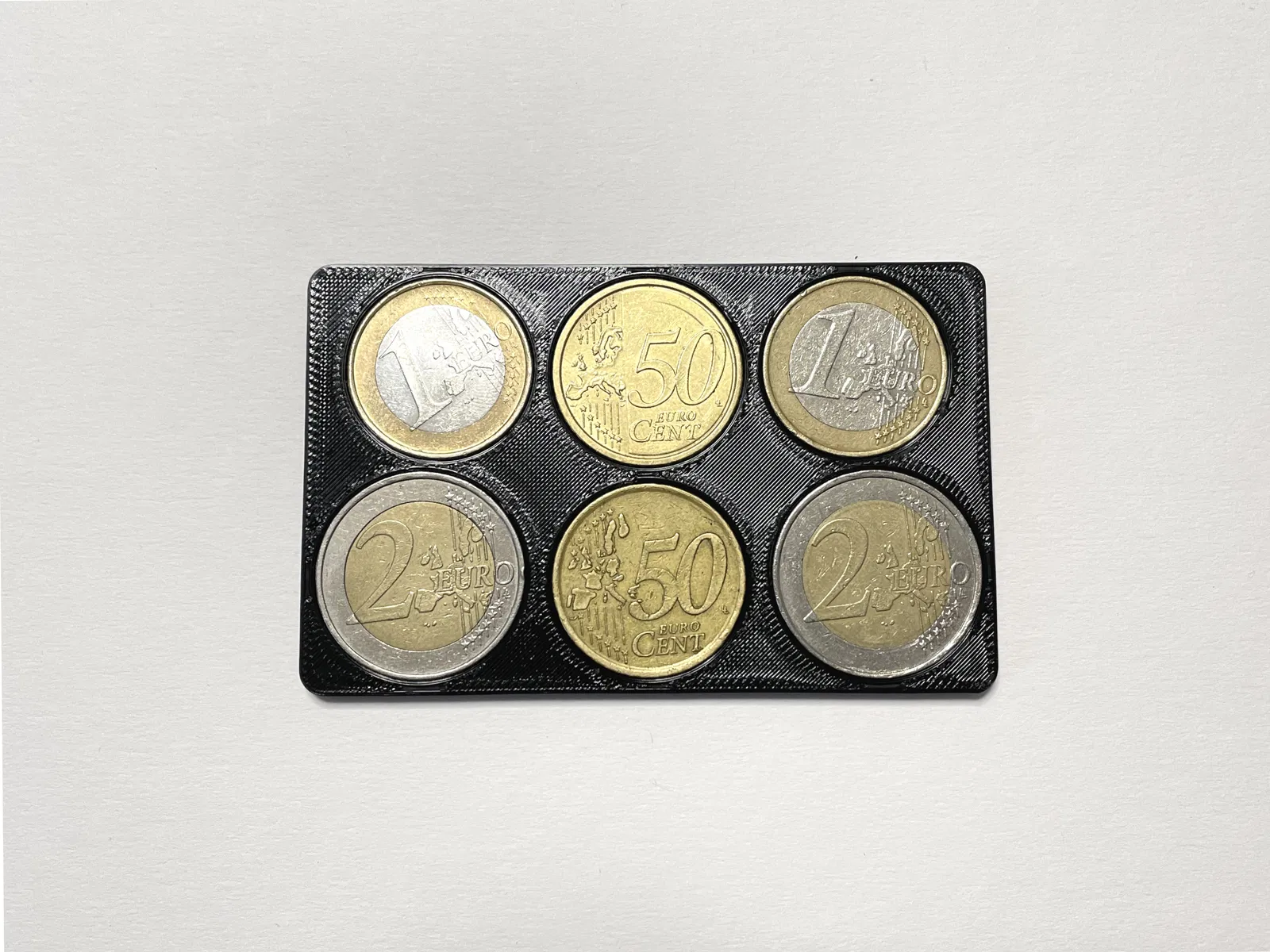 Ví đựng tiền xu euro hình thẻ tín dụng, có thể đựng vừa 7 đồng xu euro. Thiết kế mỏng 3mm, có thể in bằng PETG hoặc PLA dẻo. Thích hợp cho những ai chỉ mang theo ví thẻ.