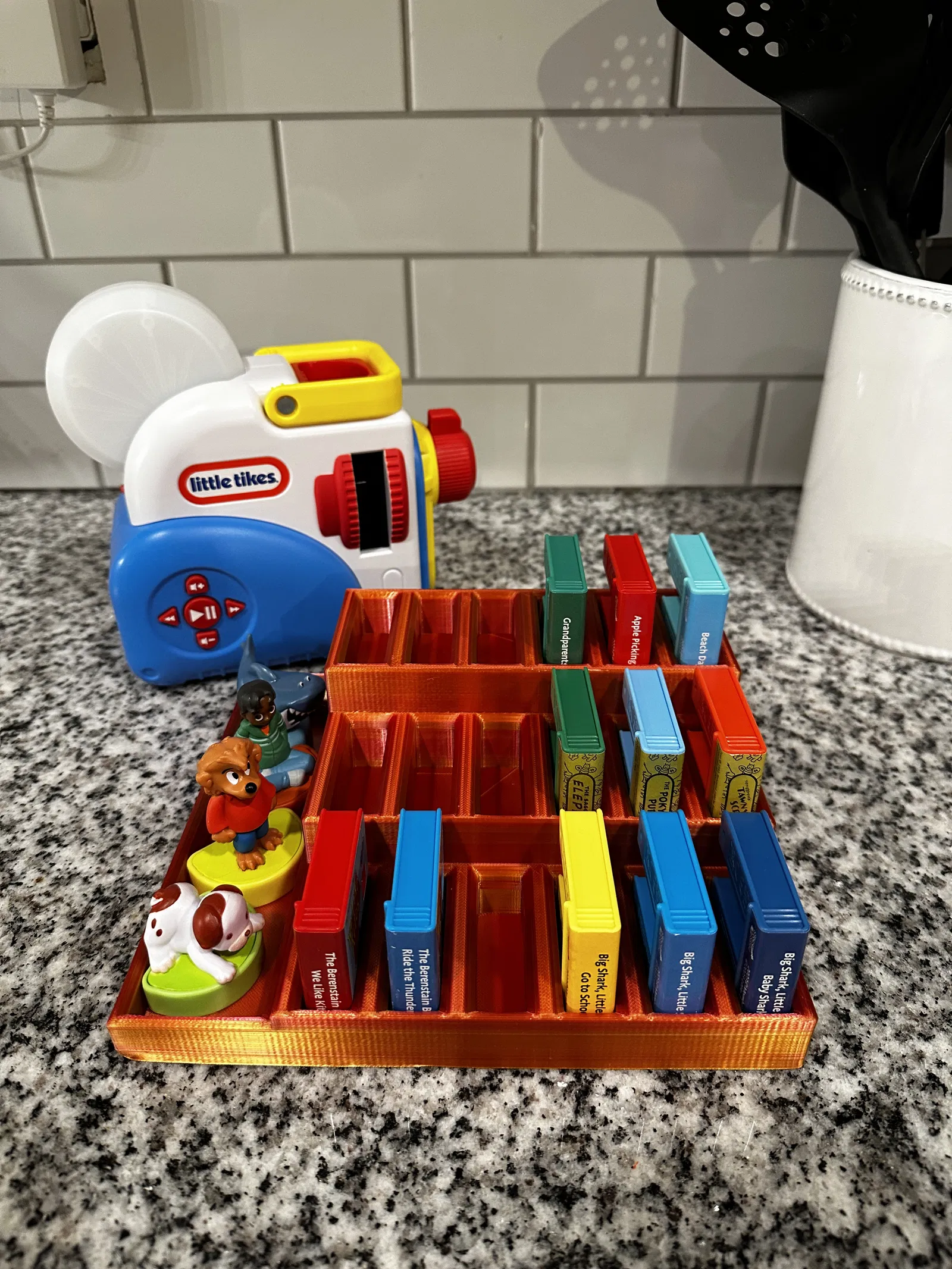 Đây là cái đế giữ cho sách và nhân vật của máy chiếu Little tikes story dream projector. Tôi đã chán cảnh mấy cuốn sách Little tikes của con tôi 3 tuổi vứt lung tung khắp nhà. Tôi đã tạo ra cái này bằng Fusion 360. Đây là bản V1, nên nếu có bất kỳ thắc mắc hay cần chỉnh sửa gì, cứ thoải mái liên hệ nhé.