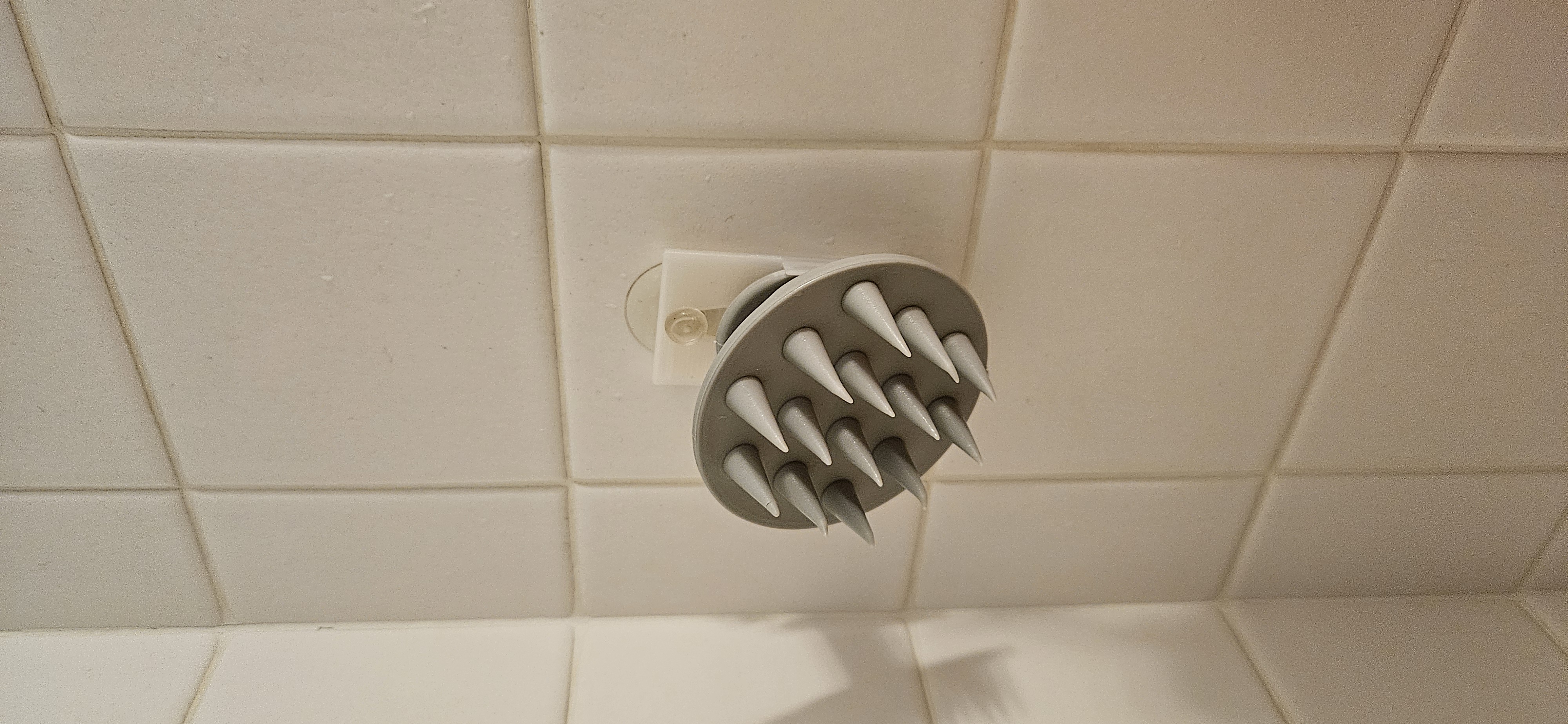 Đây là cái đế giữ dùng núm hút chân không tiêu chuẩn để giữ cây cọ gội đầu. Cái này hay lắm nha, giúp mấy bà mấy cô gội đầu sạch sẽ, gọn gàng.