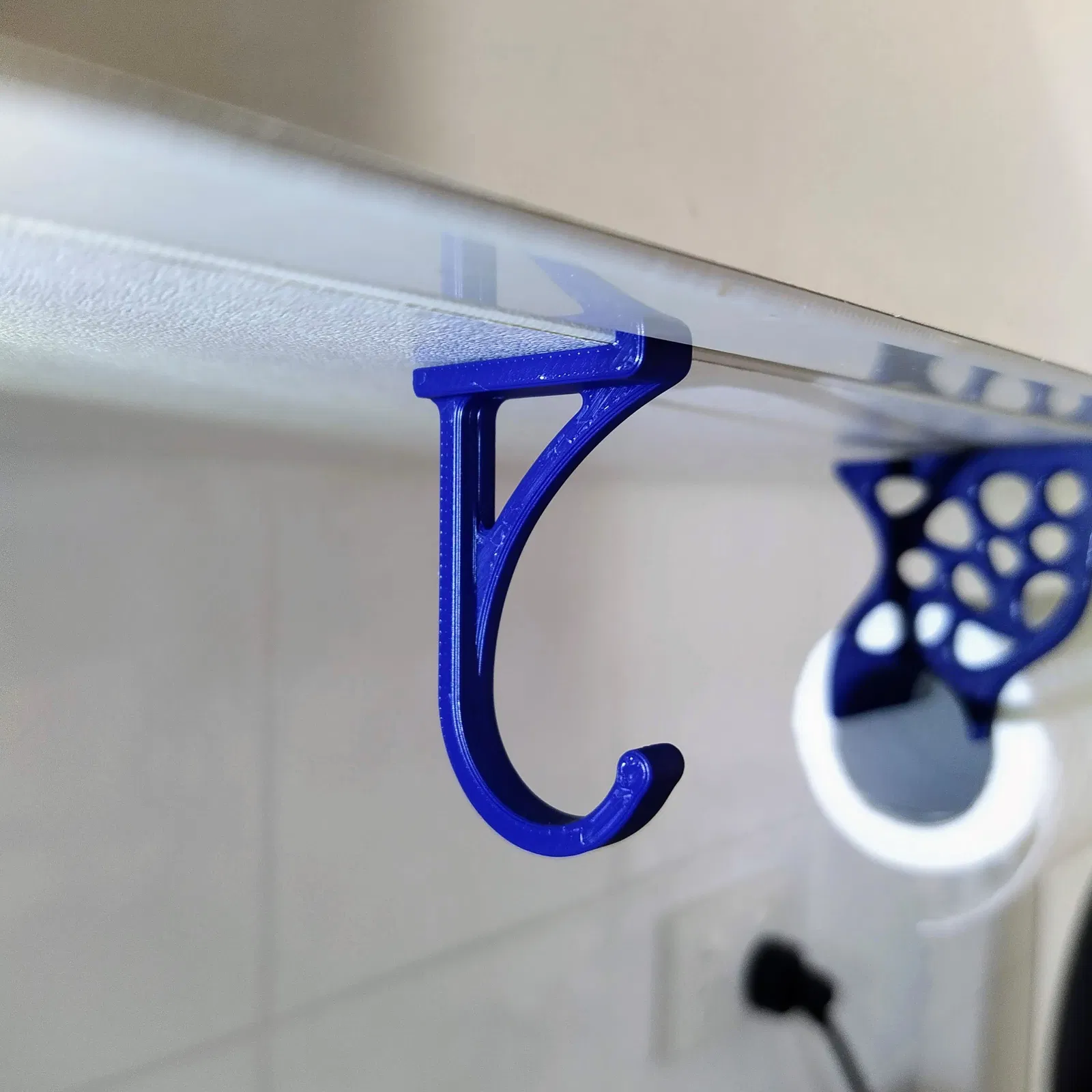 Móc treo đơn giản gắn vào kệ bếp để treo dụng cụ nấu nướng, khăn lau chén, v.v. Phiên bản thứ 3 này được thiết kế lại cho đẹp hơn và móc hẹp hơn, có 2 loại (Ver3a, Ver3b) với 4 kích cỡ cho độ dày kệ khác nhau (12, 14, 16, 18mm).