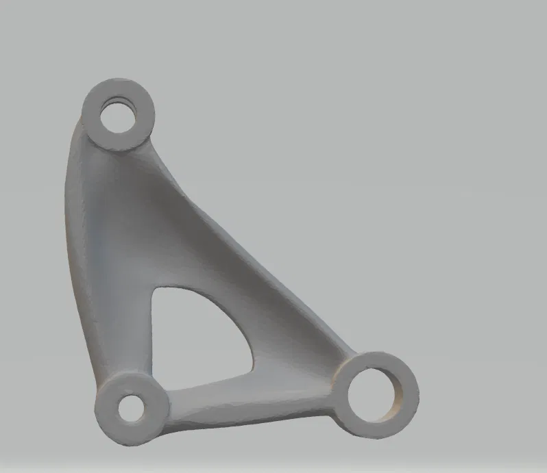 Đây là nỗ lực tốt nhất của tôi với thiết kế sinh tạo (generative design) trong Fusion 360. Tôi đã định nghĩa một vài trường hợp tải theo các hướng khác nhau, và thêm một vài ràng buộc về độ dày thành. Sau đó, Fusion 360 đã tự xây dựng vật liệu giữa các hình trụ.