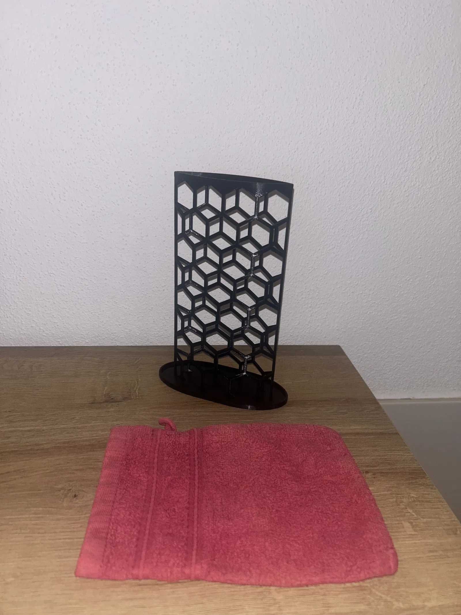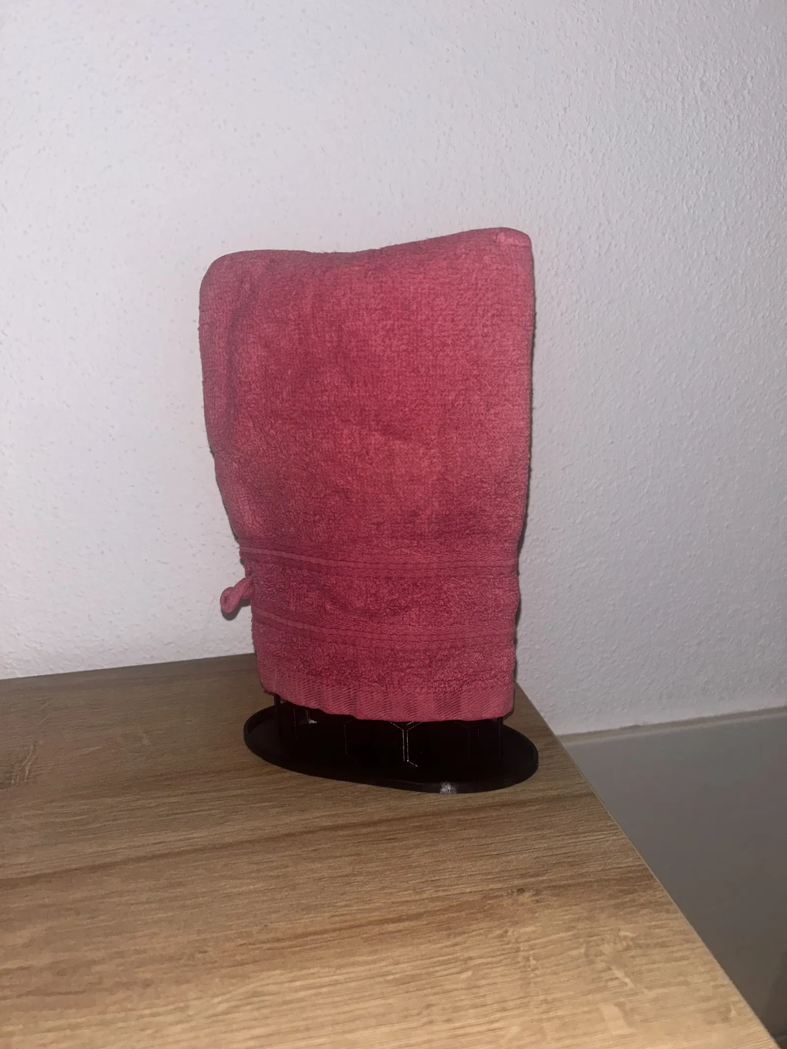 Máy sấy khăn mặt giúp loại bỏ hơi ẩm một cách hoàn hảo và nhanh chóng. Được in bằng PLA+ để thử nghiệm, nhưng PETG được khuyên dùng hơn do có hơi ẩm.