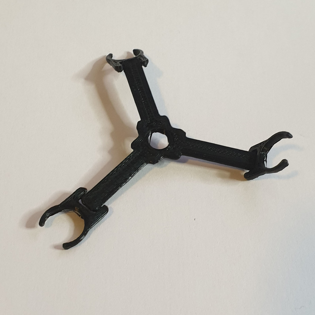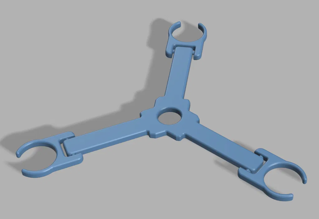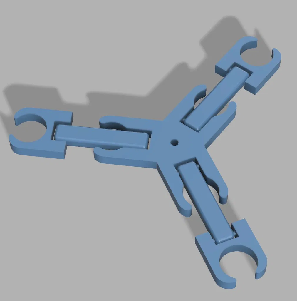 Mấy loại tripod có chân kéo dài ra choán diện tích lớn khi mở. Thiết kế này giúp giảm diện tích, giữ 3 chân cách đều tâm, cân bằng trọng tâm. In tại chỗ, có khớp điều chỉnh theo góc chân. Phiên bản mới cao hơn, cử động nhiều hơn, có kẹp đôi chân.