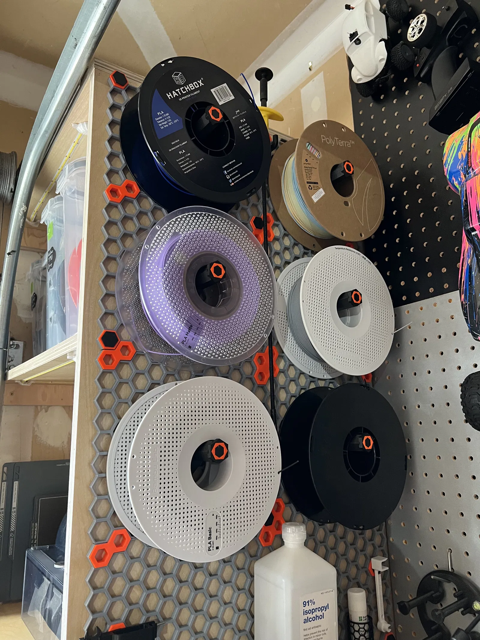 Tôi đã tạo ra chiếc nhẫn bling bling này để phù hợp với phần cuối của giá treo tường hình tường tổ ong. Điều này ban đầu được thiết kế để bạn có thể in vòng bling bling trên màu của dây tóc được treo trên móc để tham khảo nhanh. Tôi đã thay đổi nó trên tường của mình để phù hợp với màu sắc và kết hợp chúng vào giá treo. Đồ đạc.