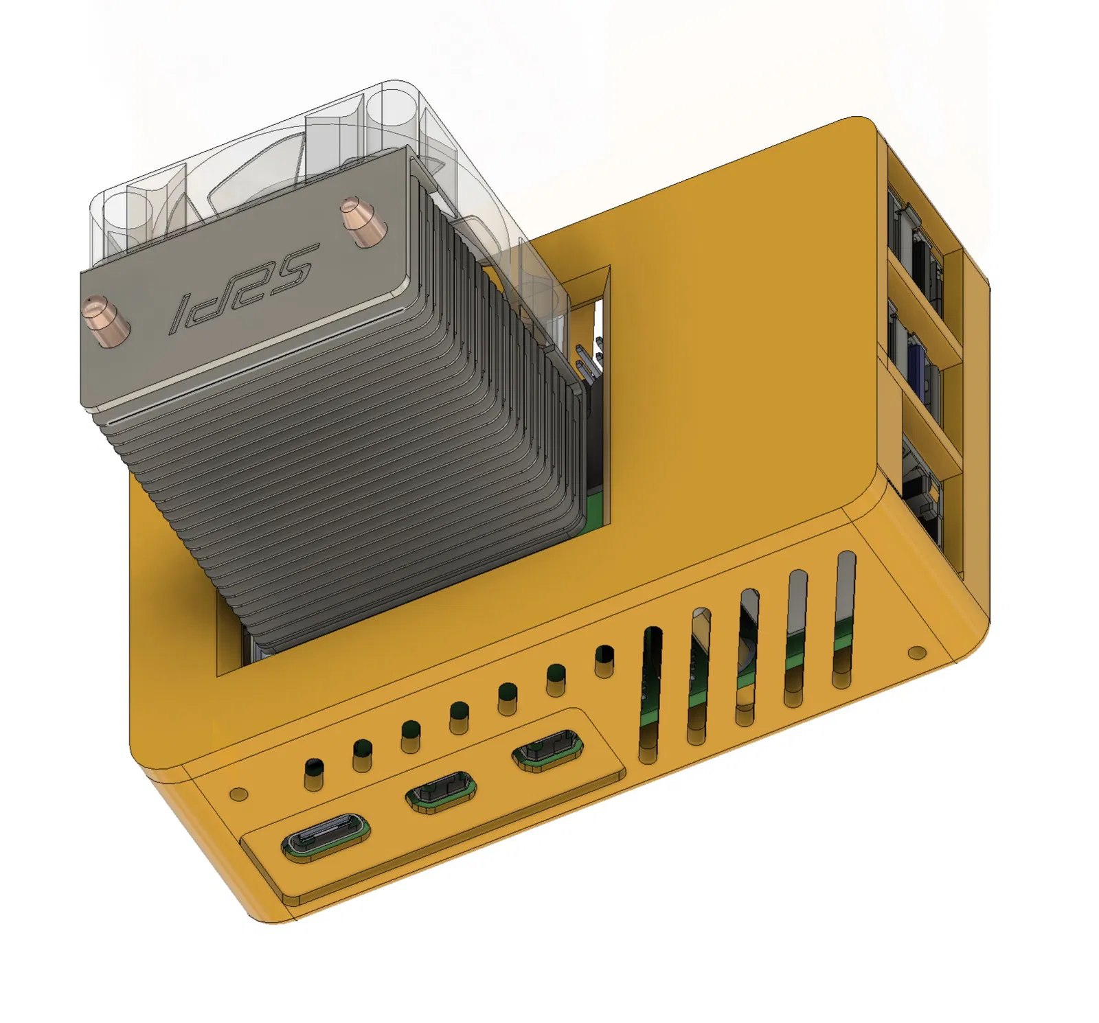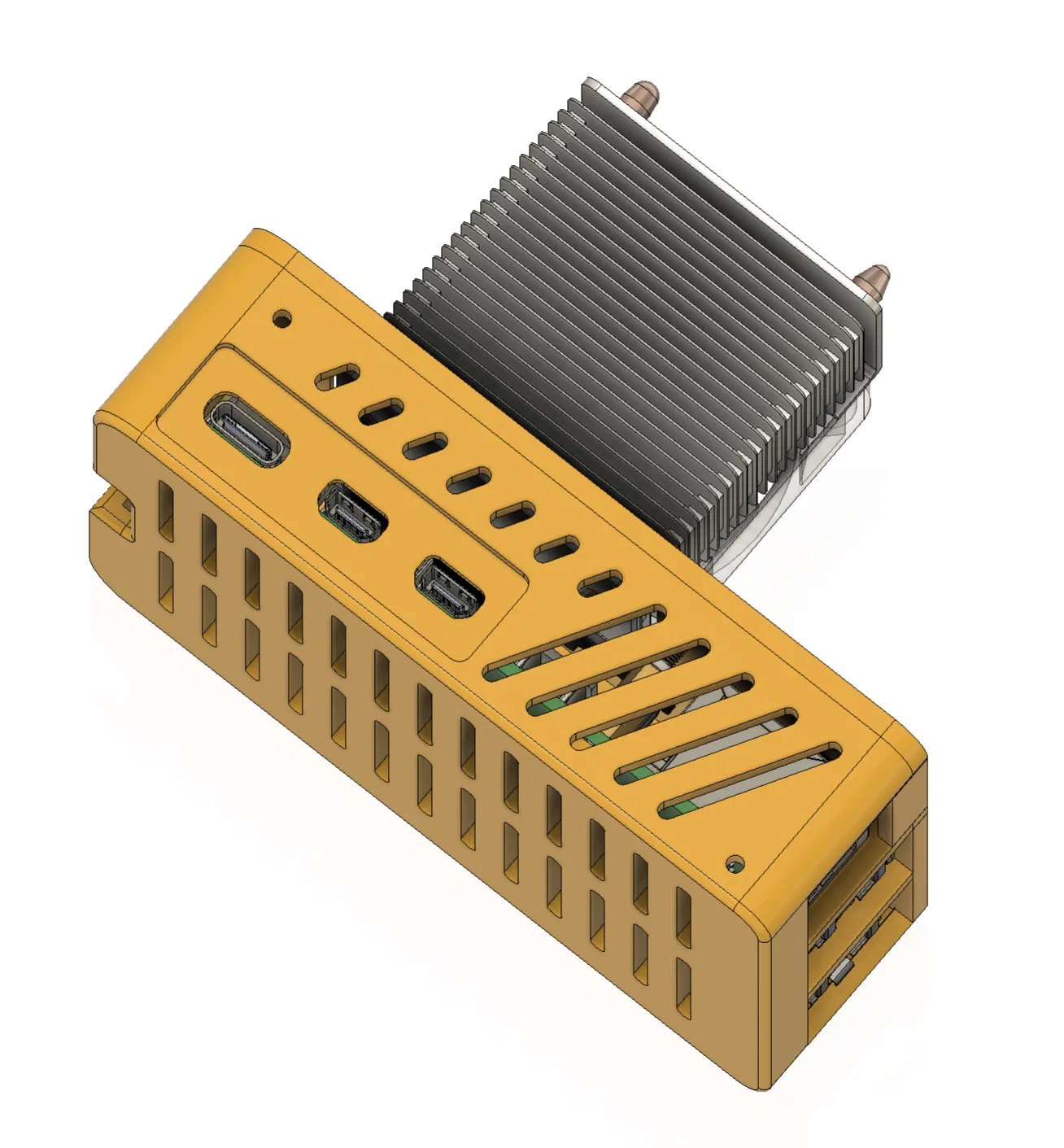Vỏ case Raspberry Pi 5 chắc chắn, thông thoáng, có đủ không gian cho tản nhiệt Ice Tower 52Pi. Độ dày tường 2.5mm cho phép gắn cổng HDMI, USB và nút reset. Có thể in bằng PLA trong suốt để chiếu sáng LED. Bao gồm cả tệp STEP và STL để dễ chỉnh sửa.