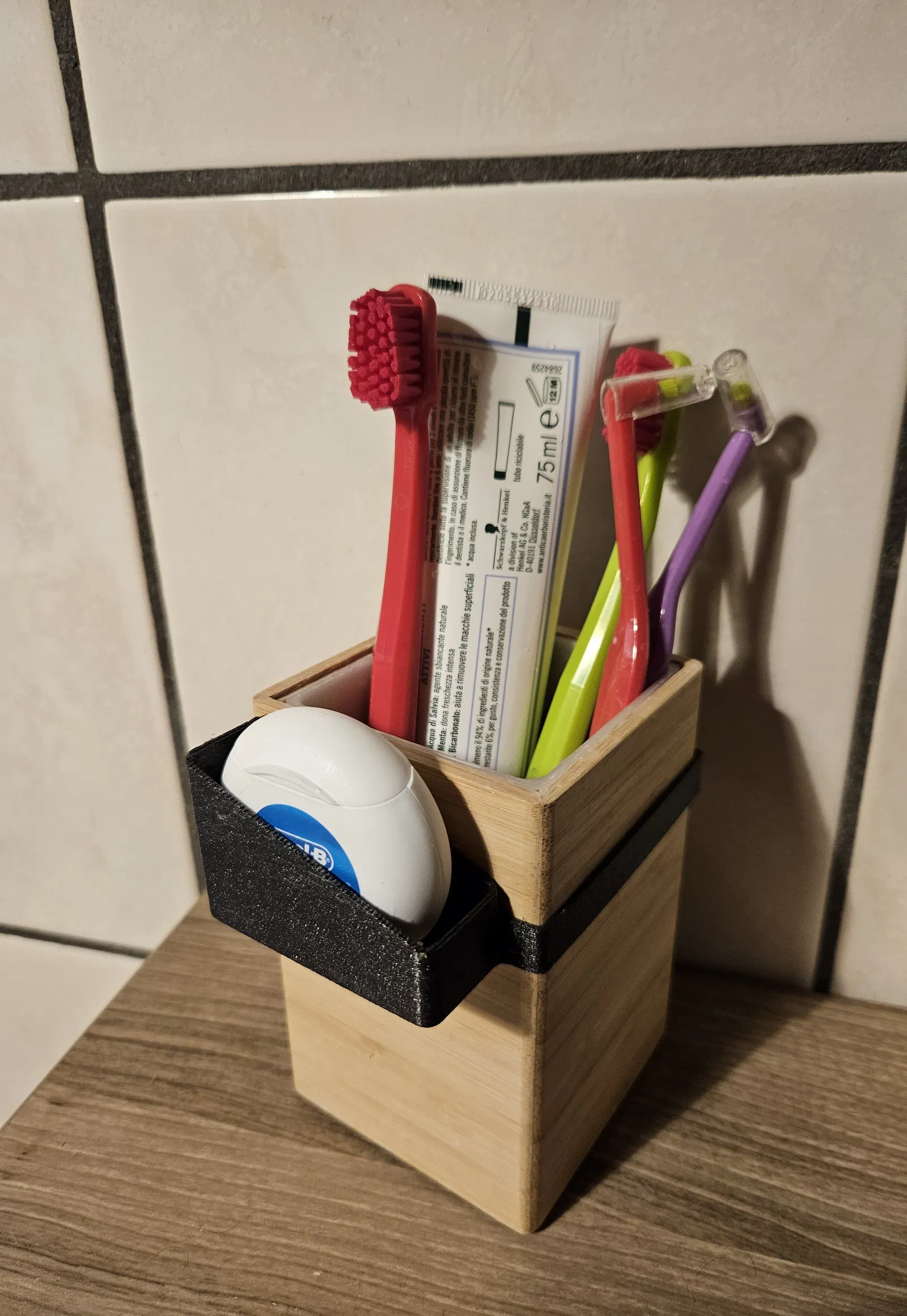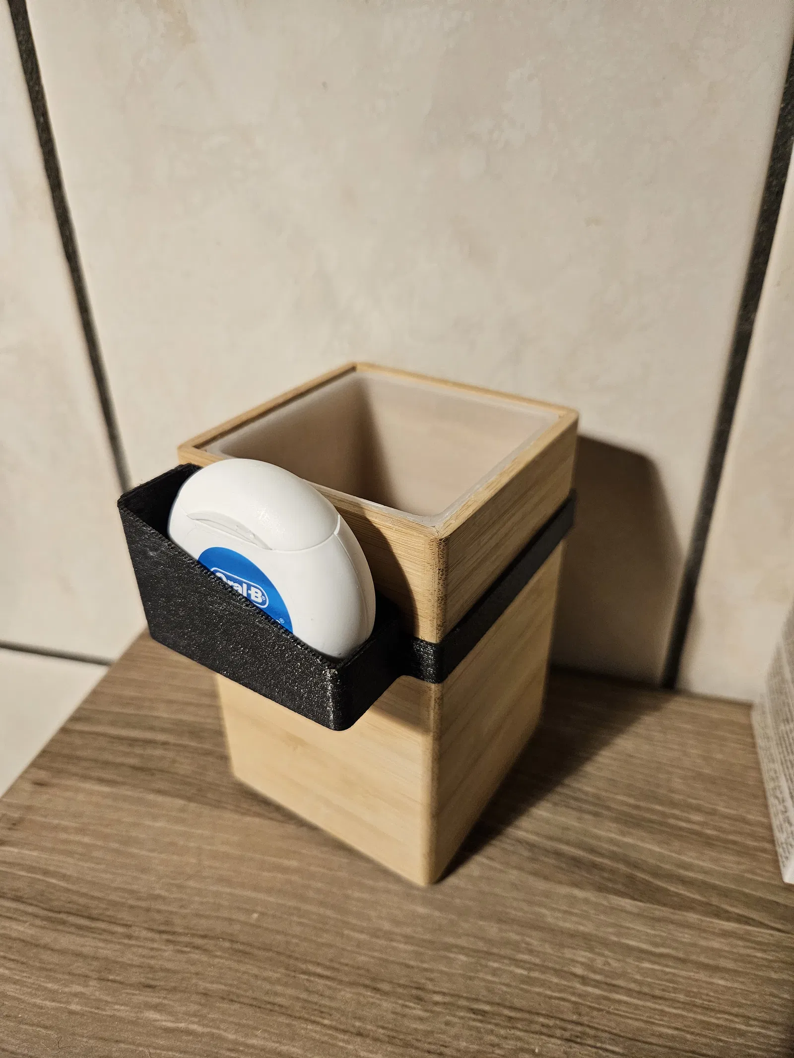 Đừng quên dùng tăm chỉ nha khoa nhé! Với giá đỡ này, bạn sẽ luôn có tăm chỉ tiện dụng. Mình có chuẩn bị 2 mẫu: một mẫu là giá đỡ bàn chải với kích thước hình vuông là 72.5x72.5mm, và một mẫu khác với một cái kẹp đơn giản trong trường hợp bạn có giá đỡ bàn chải khác.