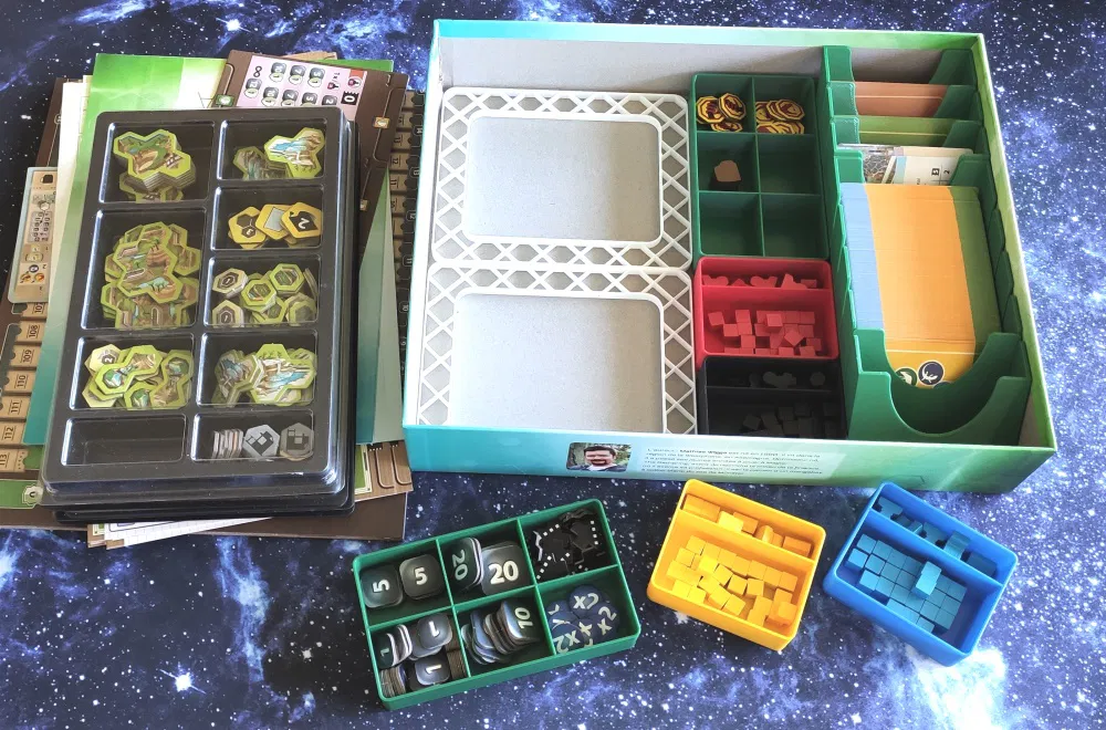 Bộ lót/khay sắp xếp này dành cho bàn cờ Ark Nova, giúp việc lưu trữ và chuẩn bị ván chơi trở nên dễ dàng hơn. Được thiết kế để in trên giường in trung bình, có thể tùy chỉnh số lượng in cho phù hợp.