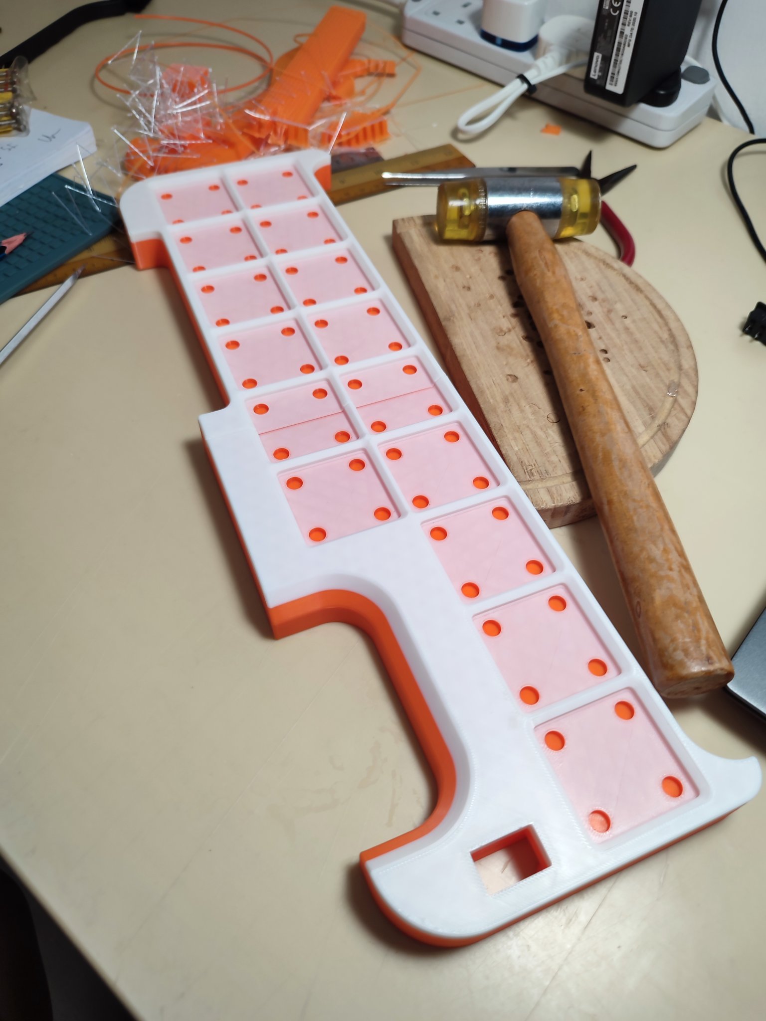 X1 tạo ra sự bulging tròn ở các góc nhọn khi in ở tốc độ mặc định nhanh của chúng. Vì vậy, tôi tận dụng điều này và làm cho các khớp khít với nhau, có nghĩa là bạn phải sử dụng một cái búa cao su để gõ nhẹ 2 phần lại với nhau, và một mảnh nhỏ filament để khóa chúng lại.