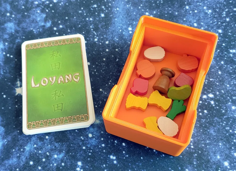 Bộ organizer/lót hộp dành cho boardgame "At the Gates of Loyang". Lưu ý kiểm tra kích thước hộp (310x220x70mm) và các yêu cầu in chi tiết. Sản phẩm hỗ trợ lưu trữ dọc và không hỗ trợ bọc bài.