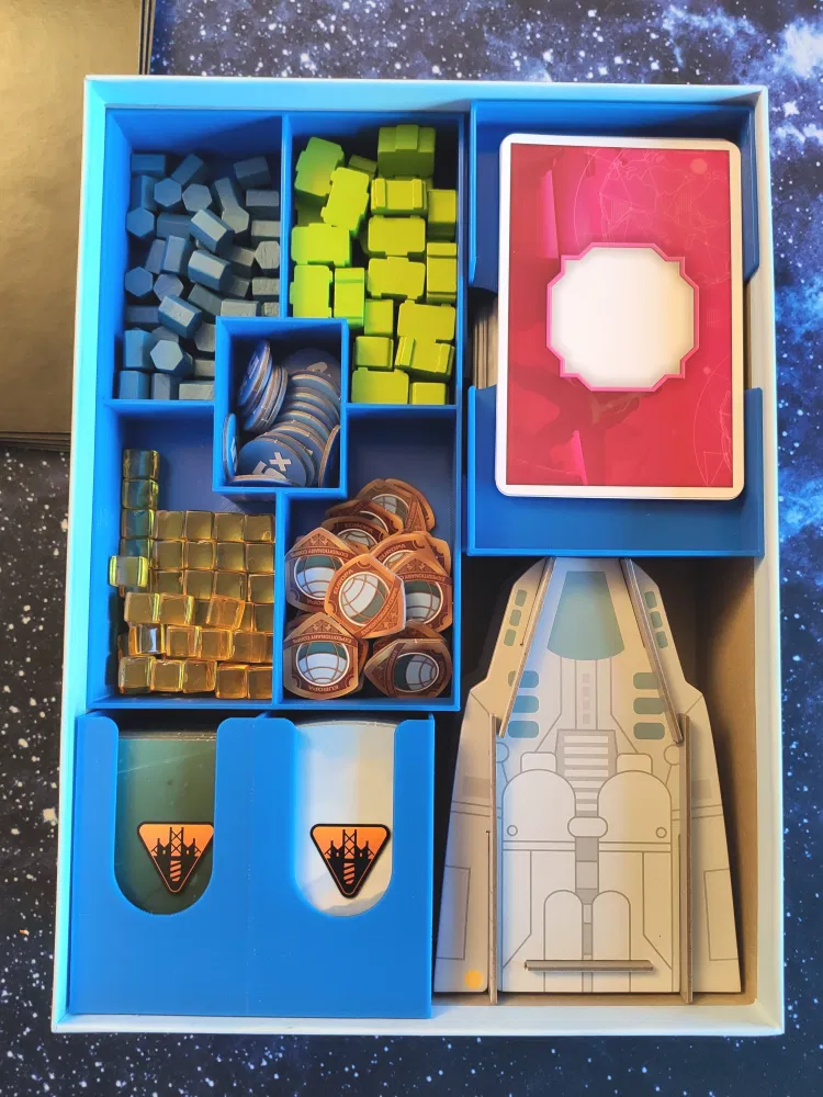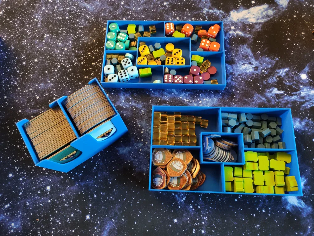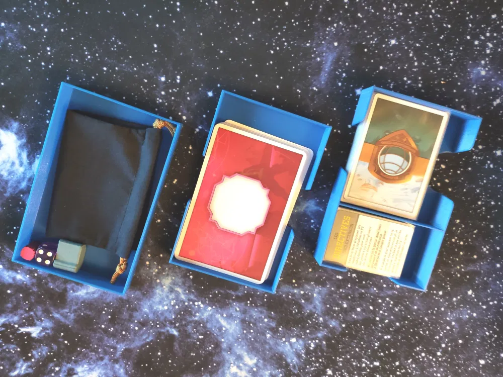 Khay chia/hộp đựng cho phiên bản bán lẻ của board game The Artemis Project. Có chỗ cho các bản mở rộng Directives và Alien-Relic, hỗ trợ bao bọc thẻ bài và lưu trữ dọc.