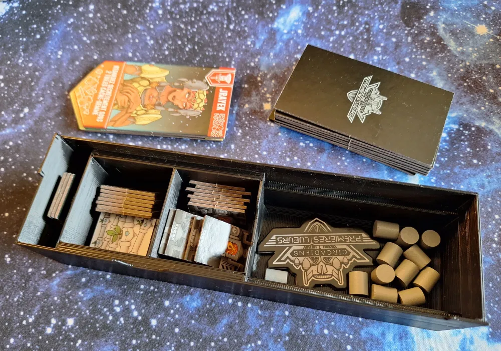 Hộp insert này dành cho Circadians: First Light (phiên bản đầu). Nó giúp việc lắp đặt và lưu trữ theo chiều dọc dễ dàng hơn mà không cần mở nắp. Hộp insert không hỗ trợ bất kỳ bản mở rộng hay sleeve nào.