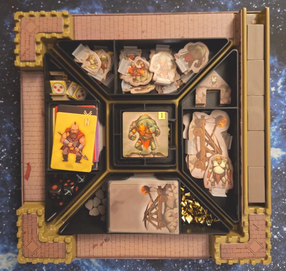 Bộ insert "The Siege of Runedar" được thiết kế để sắp xếp gọn gàng các thành phần của board game cùng tên. Với các khay độc đáo, nó hỗ trợ lưu trữ dọc và tương thích với sleeve cho hầu hết các loại thẻ, giúp bảo quản và tiện lợi hơn khi chơi.