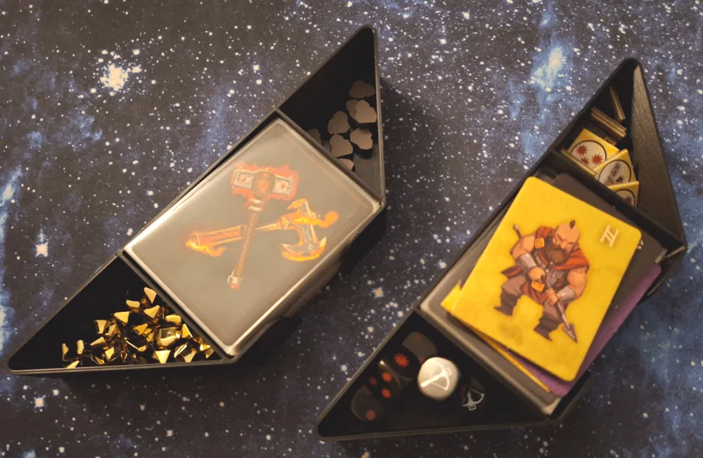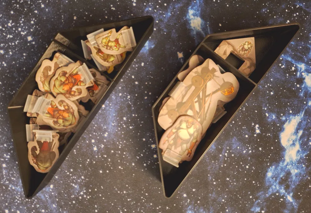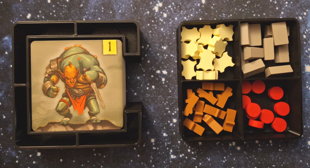 Do cái hộp của board game này hơi bị "kỳ lạ", nên mấy cái khay trong bộ insert này cũng "không giống ai" luôn. Bạn phải in Cards.stl và Standees.stl mỗi loại 2 lần nha.