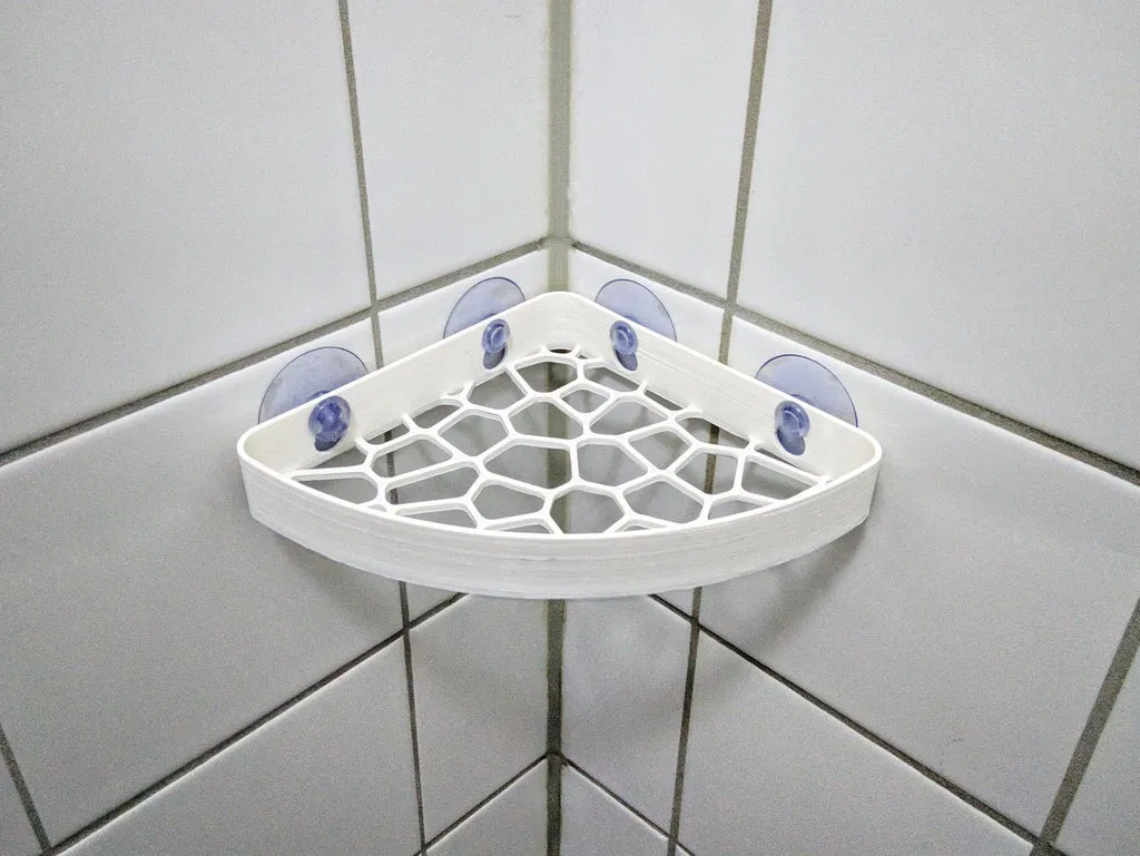 Đây là phiên bản lớn hơn của Kệ Tắm Voronoi, có thể gắn bằng 4 đế hút. Đề xuất tắt quạt làm mát cho lớp đầu tiên và đảm bảo khay in được cân bằng để có chất lượng tốt nhất.
