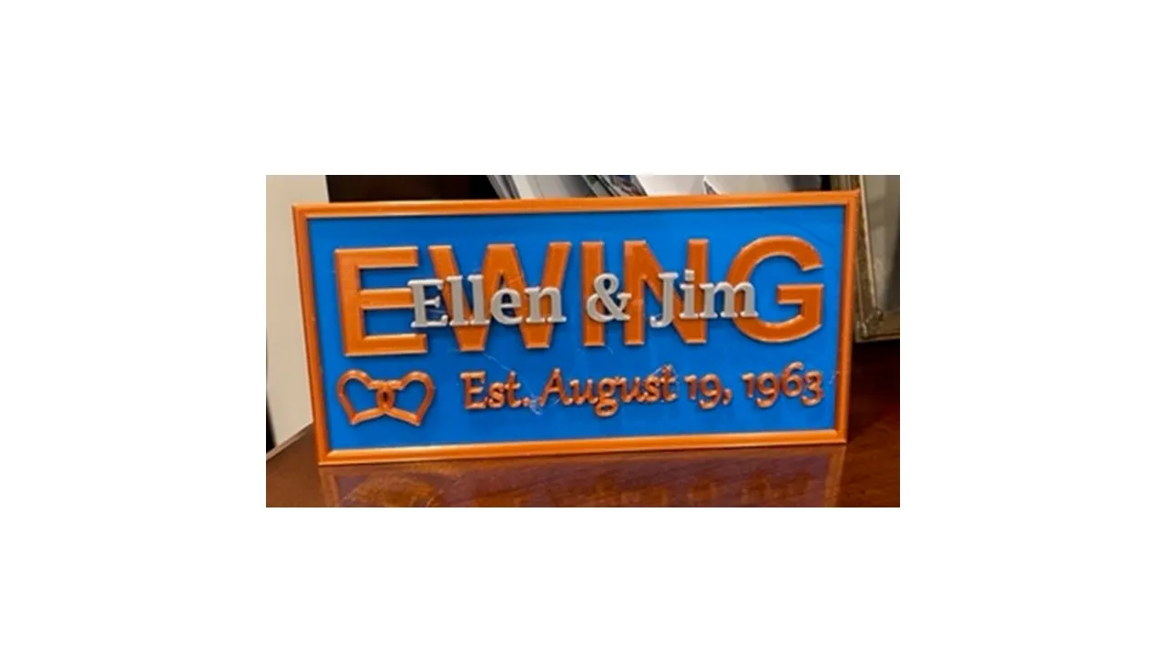Cung cấp một món quà kỷ niệm ngày cưới độc đáo và cá nhân hóa. Thiết kế Fusion 360 có thể được tải xuống để thực hiện các thay đổi về tên. eSlicer cho phép bạn thay đổi màu filament ở các mức độ chính xác, vì vậy chữ khắc trên tấm biển có thể được điều chỉnh thông qua quá trình in.