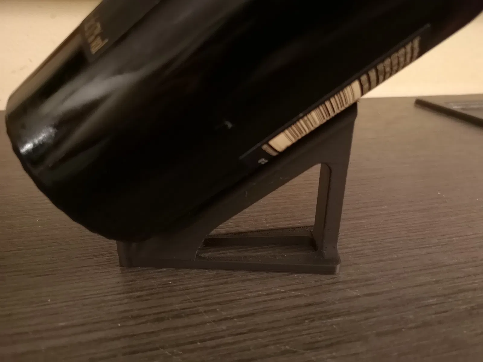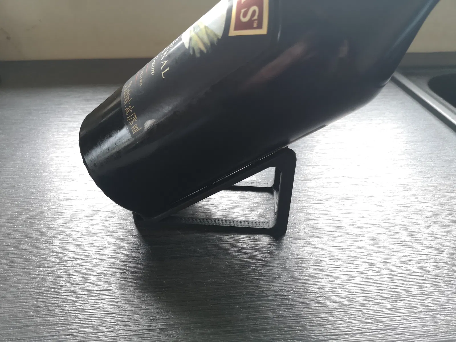 Cái đế này để trưng bày mọi loại chai rượu, với góc nghiêng 35 độ. Có hai phiên bản, tui hay xài bản nhỏ hơn. Không cần support, có kèm file STEP nha. Trông nó tàng hình lắm đó!