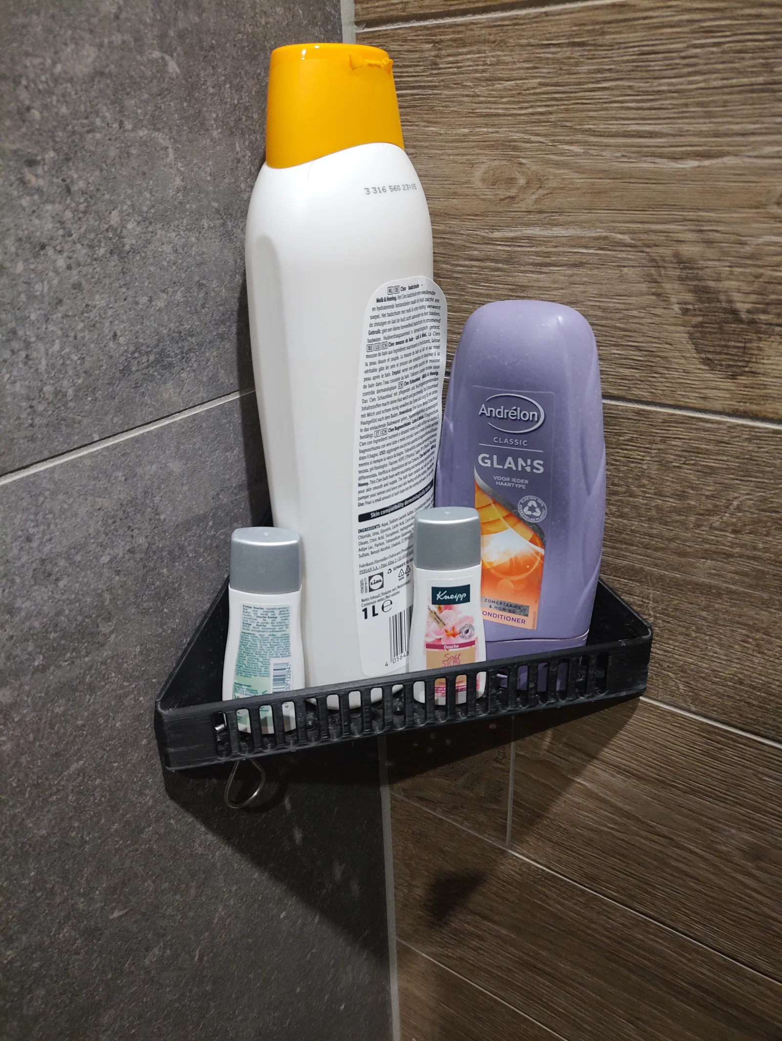 Một kệ để tổ chức các chai xà phòng, v.v.