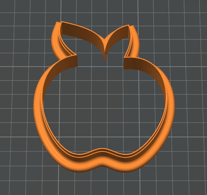Khuôn cắt bánh quy hình quả táo đơn giản. Cạnh cắt dày 0.65mm giúp cắt bột bánh quy sắc nét. Cài đặt in: Độ phân giải 200, Độ đặc 20%, không cần Rafts hay Supports. Phù hợp với máy Bambu X1 Carbon.