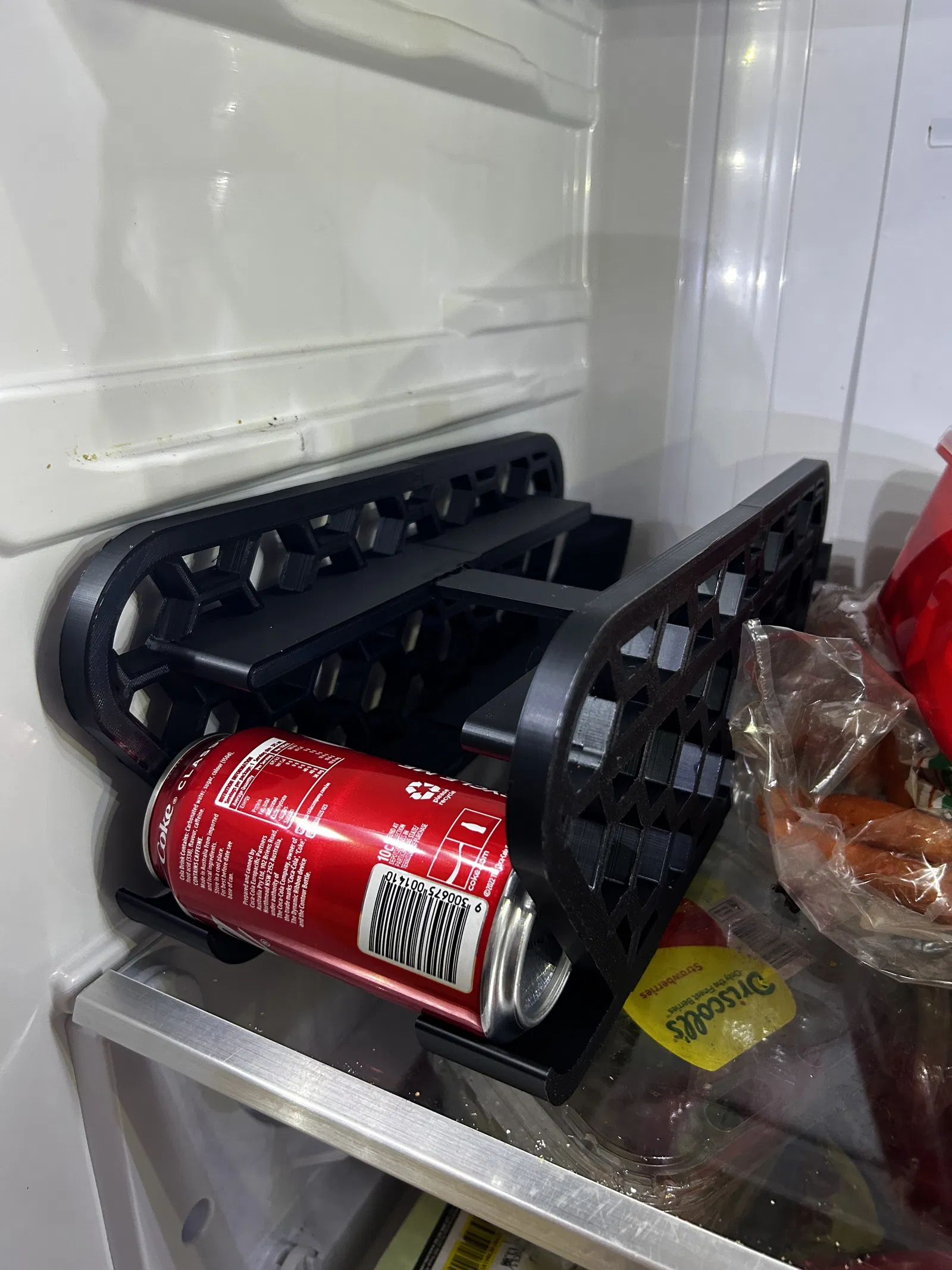 Một bộ giữ lon dung tích 375ml vừa vặn trong tủ lạnh nhà bạn. Phiên bản này được chỉnh sửa để phù hợp với lon Coca-Cola 375ml tiêu chuẩn của Úc, với các thanh dẫn được điều chỉnh để dễ dàng lắp đặt.