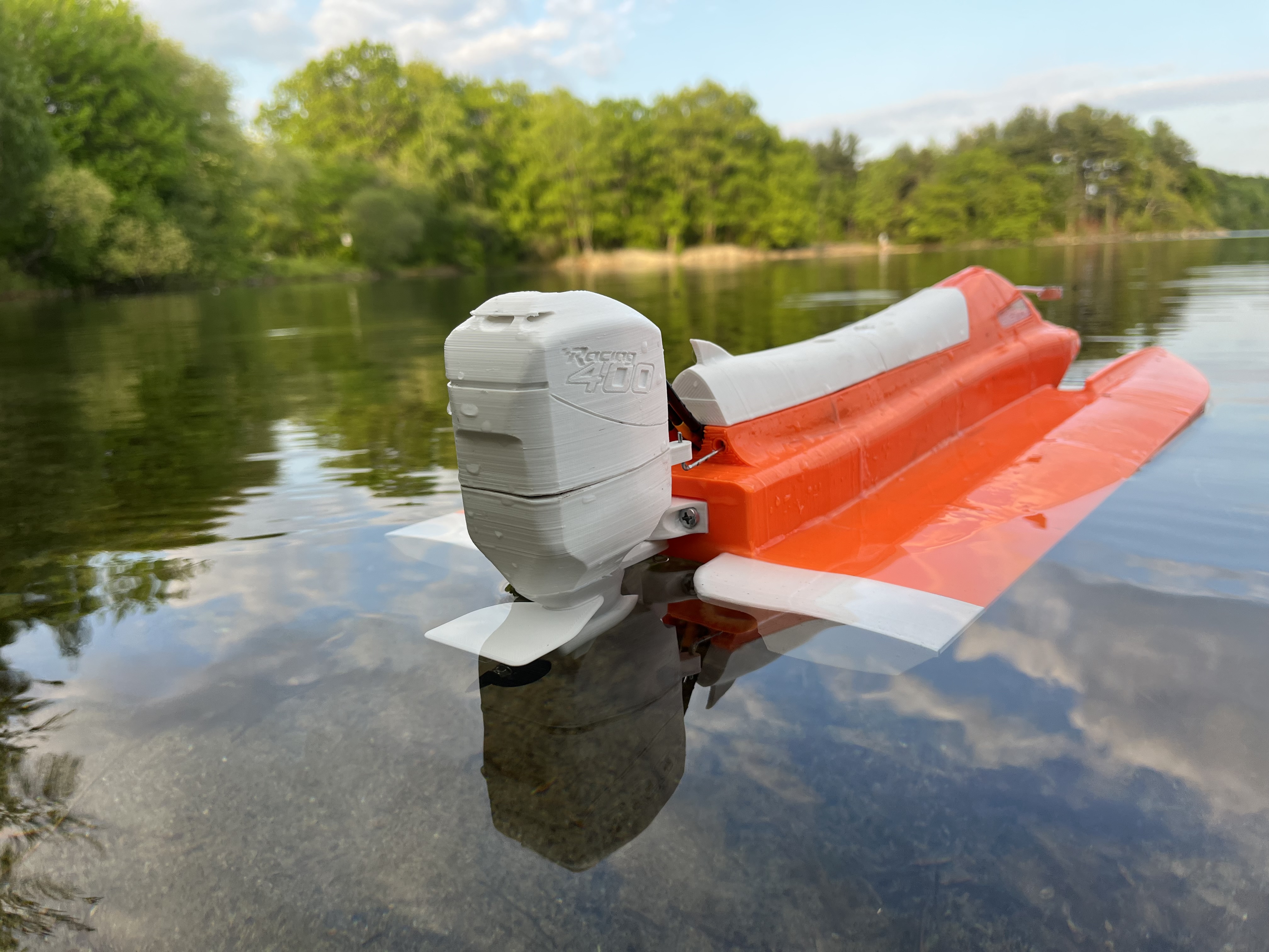 Mô hình Động cơ Ngoài Boạt RC In 3D này có thể đạt tốc độ hơn 45 dặm/giờ nhờ động cơ mạnh mẽ. Có sẵn video hướng dẫn và tệp STL cho các thân thuyền tương thích trên Patreon. Khám phá thêm tại trang web của nhà thiết kế.