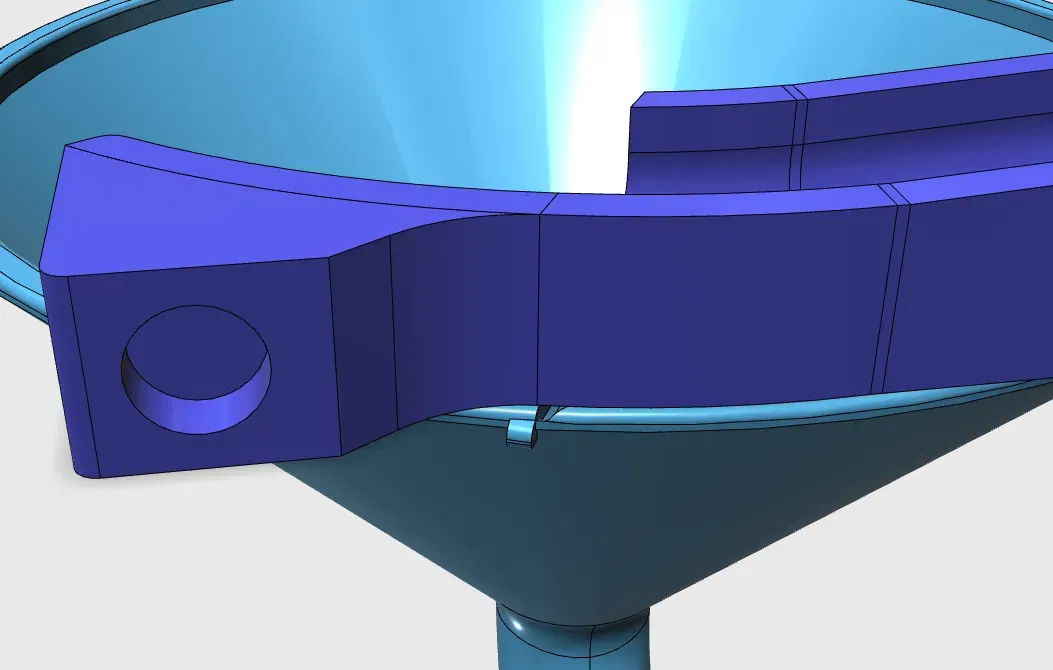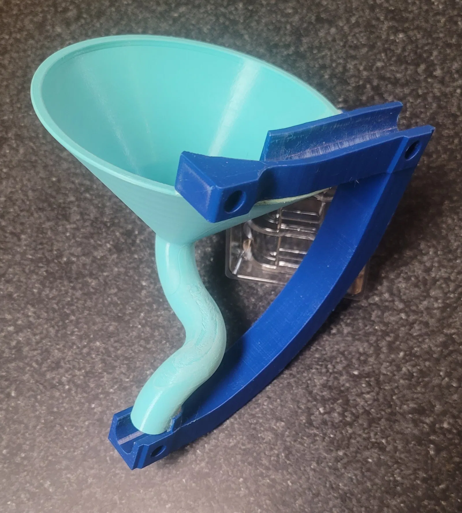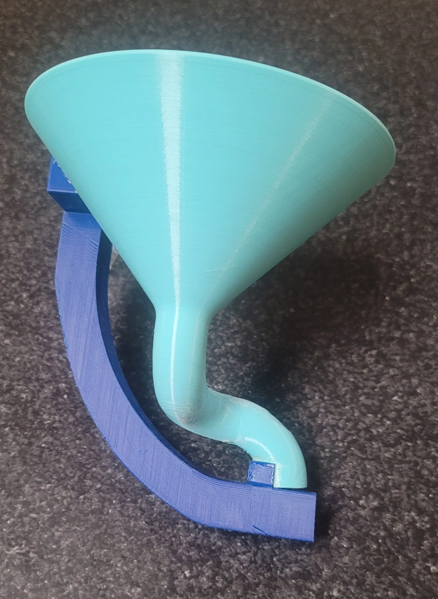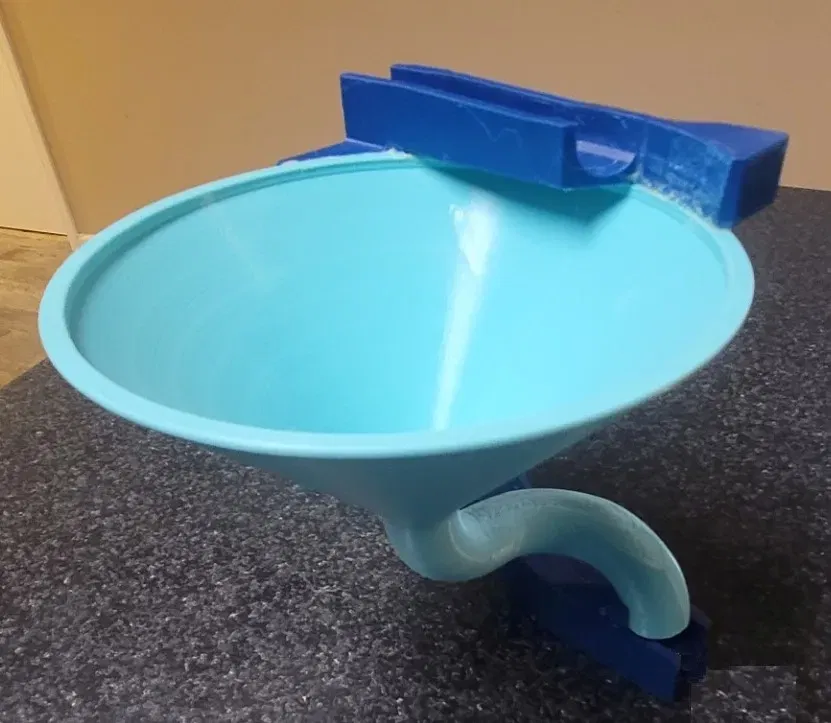 Bình funnel bằng đá được thiết kế cho một phần của đường ray tủ lạnh. Độ dung sai 15mm từ tâm đến mặt nam châm. 3) Nam châm 10 x 5 mm. Sẽ khuyến khích sử dụng viền để in. Các hỗ trợ hữu cơ đã được sơn ở những nơi cần thiết. 4 T/B/W 15% độ đặc. Mẫu thử đã được in bằng PolyLite Polymaker Teal và Blue. Các bộ phận cần được dán/gắn lại với nhau. Các rãnh căn chỉnh trong bình funnel.