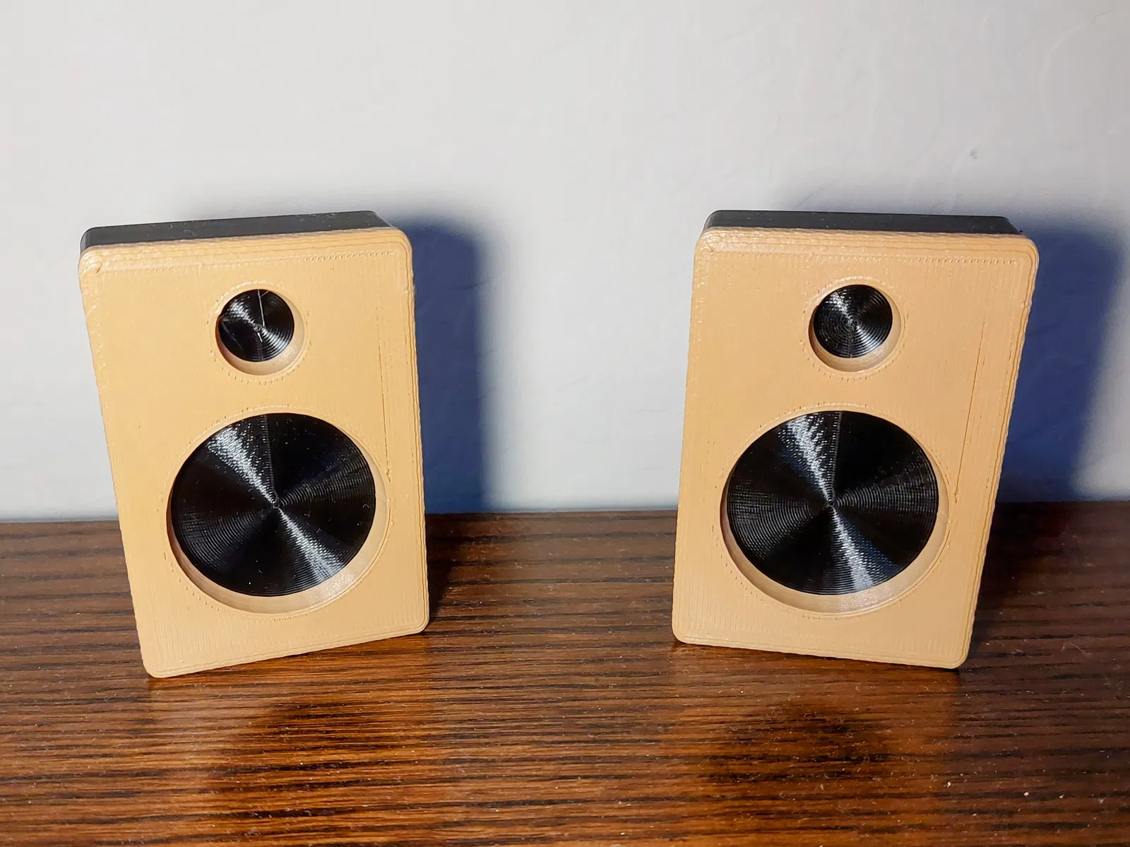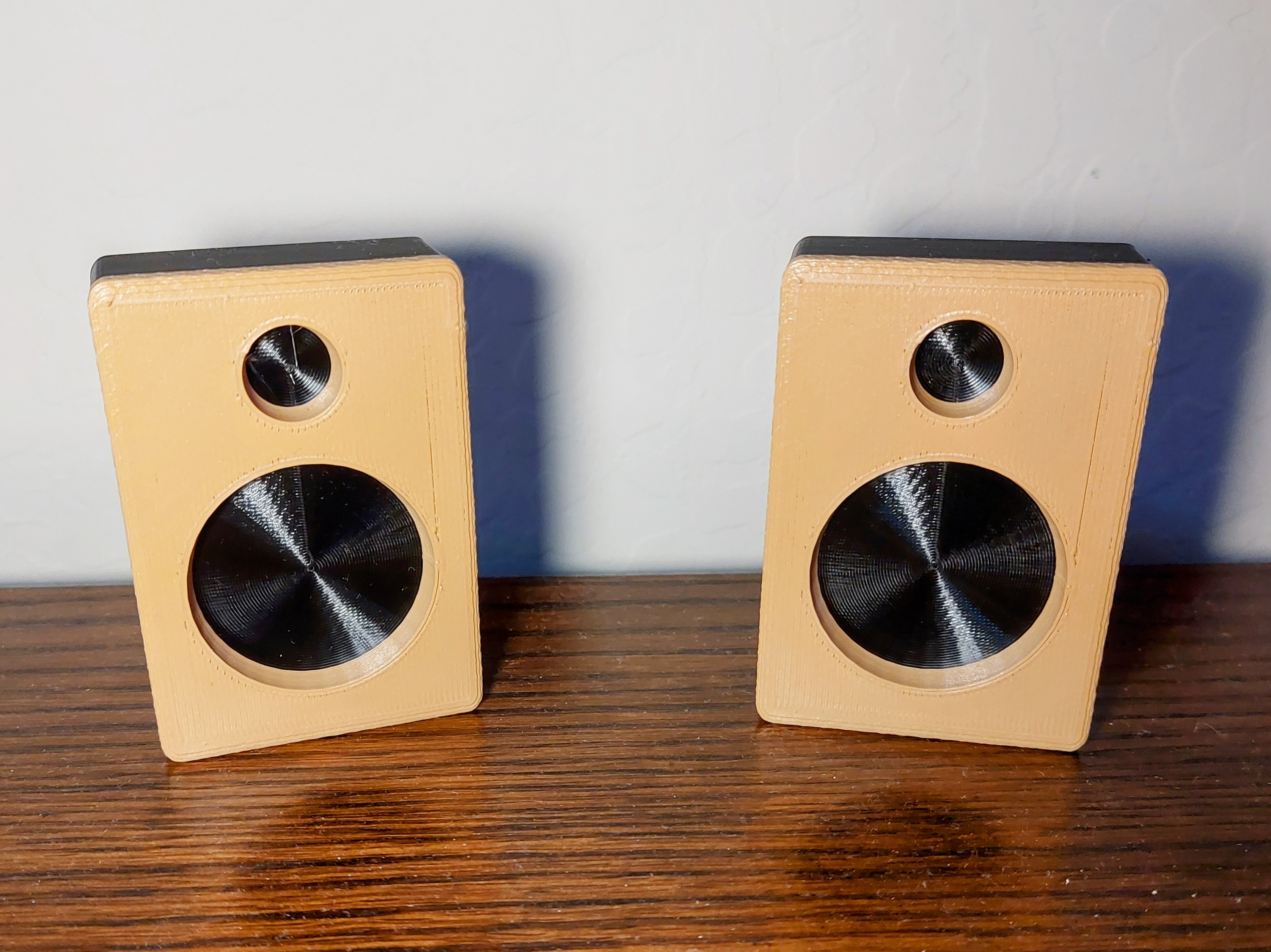 Đôi khi những thứ đơn giản nhất lại khó tìm nhất; tôi chỉ cần một cặp loa nhỏ để làm đạo cụ, thế là TinkerCAD ra tay: không có gì cầu kỳ, chỉ là một cái vỏ đơn giản dễ in với đổi màu.