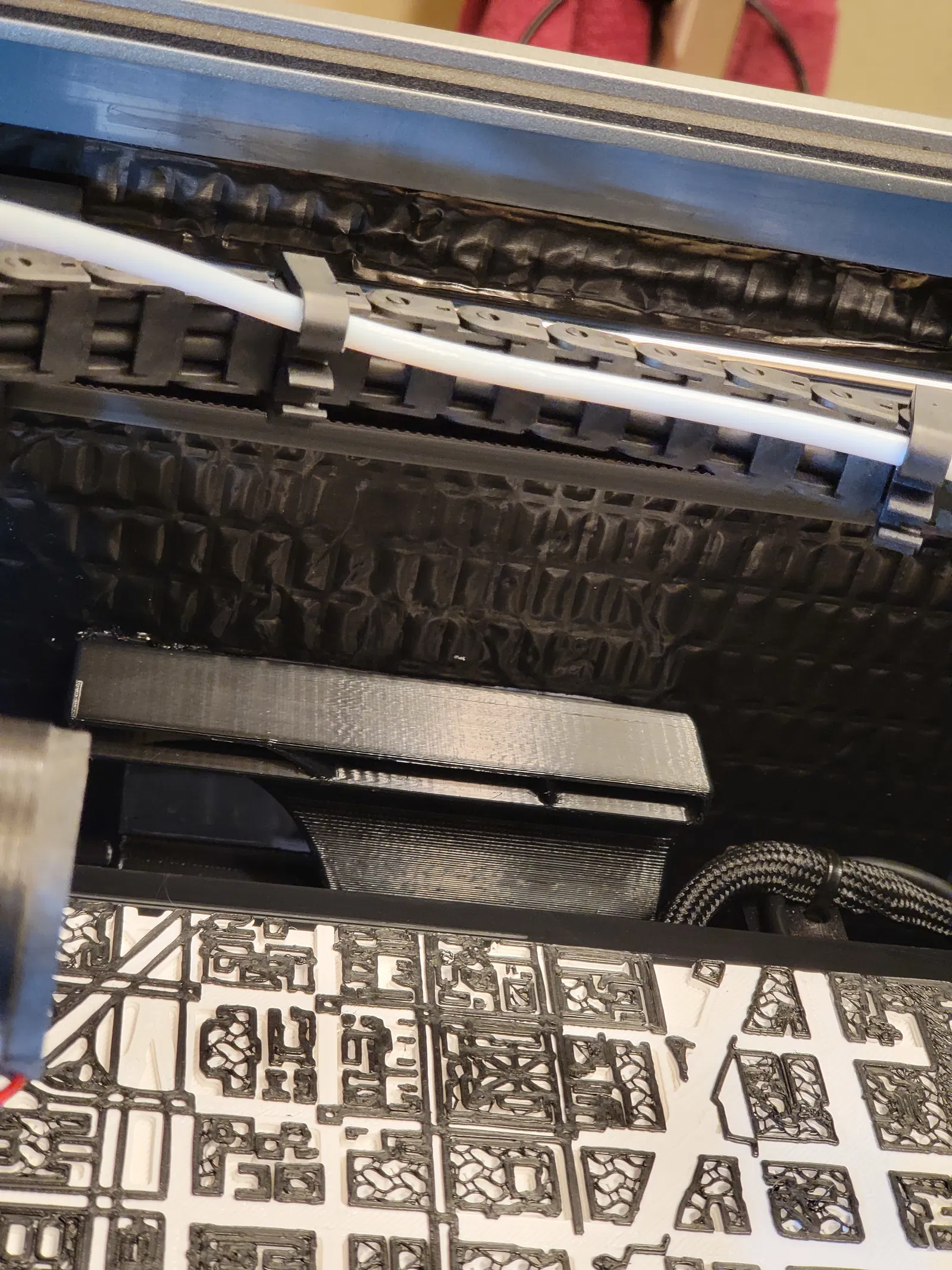 Bạn sẽ cần tháo cả cái cục lidar và các giá đỡ kim loại giảm căng dây cáp giường để quạt vừa. Cái giá đỡ in 3D này thay thế cho giá đỡ kim loại.