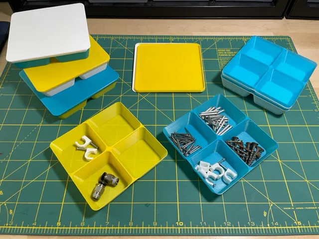 Khay đựng linh kiện và đồ dùng các loại trong lúc thử nghiệm hoặc tháo lắp. Khay được thiết kế tối ưu vật liệu, in không cần support, rất tiện lợi cho anh em DIY.