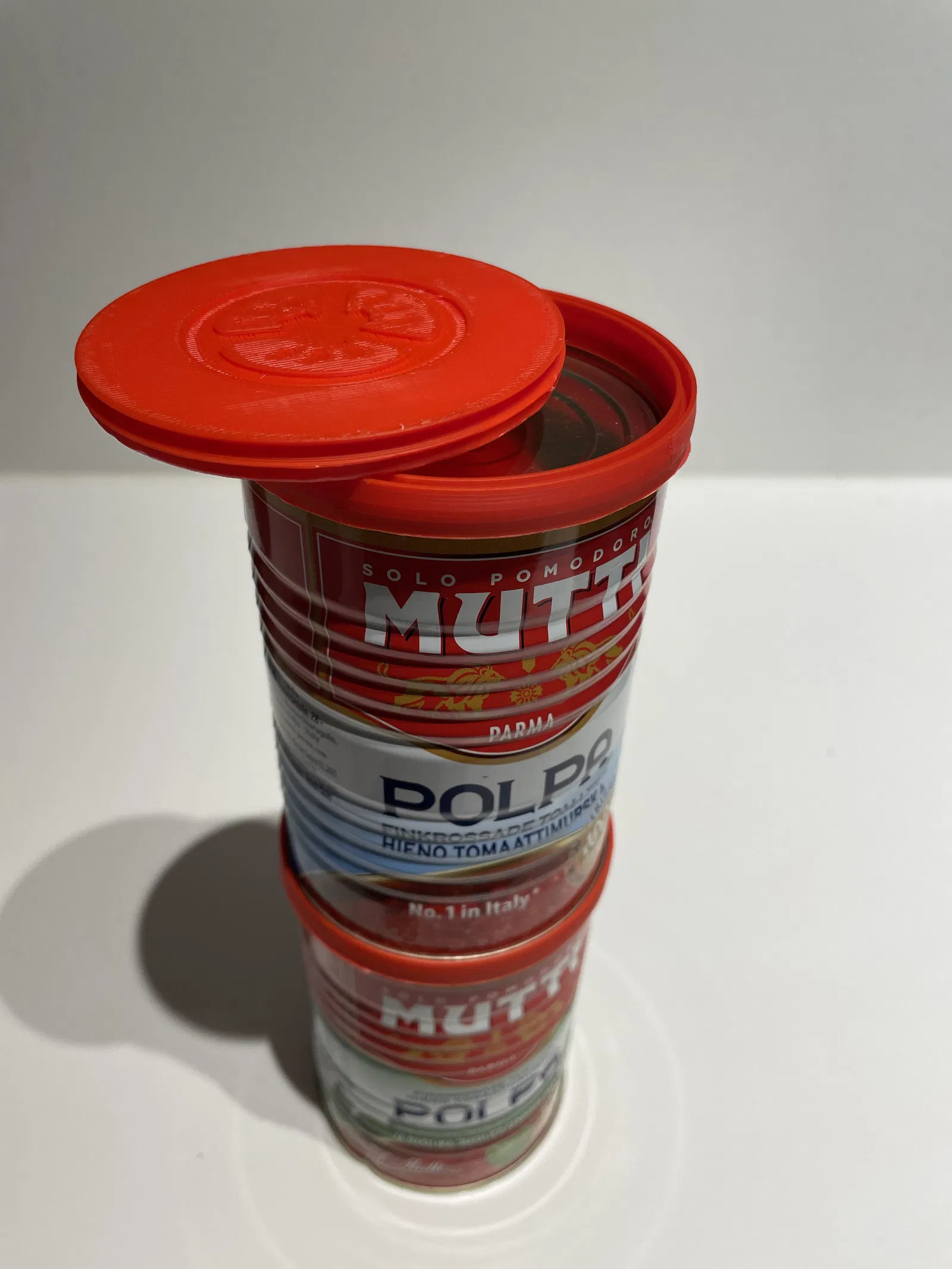 Không xếp chồng lon sốt cà chua Mutti lên nhau được gây tốn diện tích tủ bếp? Chiếc đế in 3D này sẽ giúp bạn giải quyết vấn đề, đồng thời còn có nắp đậy tùy chọn để bảo quản sốt trong tủ lạnh, tránh khô và tiết kiệm không gian hiệu quả.