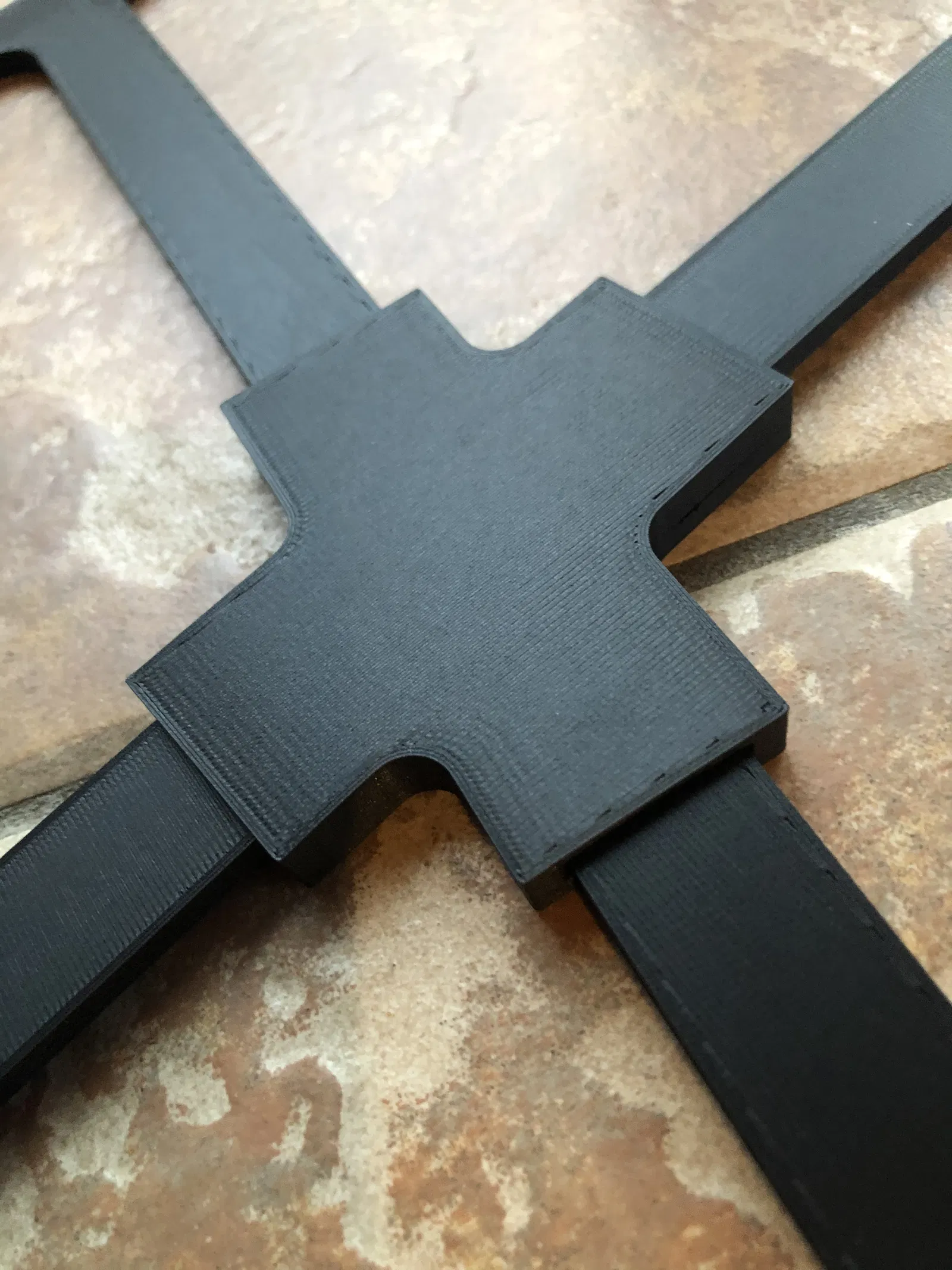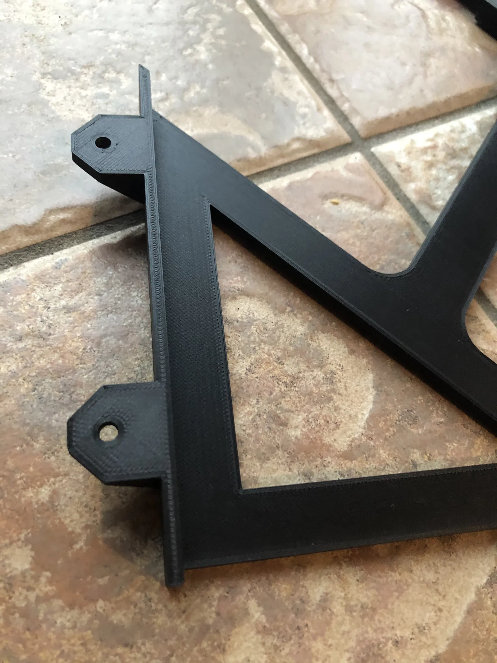 In bằng sợi PLA màu đen CF của SUNLU, độ dày lớp cắt là 0.2mm. Mấy cái lỗ khớp nối ở giữa tui làm cho nó bự hơn chút xíu để đế gắn vô dễ dàng hơn. Lắp xong vô vị trí là khỏi cần keo luôn. In từng miếng góc không cần support - và mấy bà/mấy ông có thể gắn cái khớp nối ở giữa vô một trong mấy miếng góc đó.