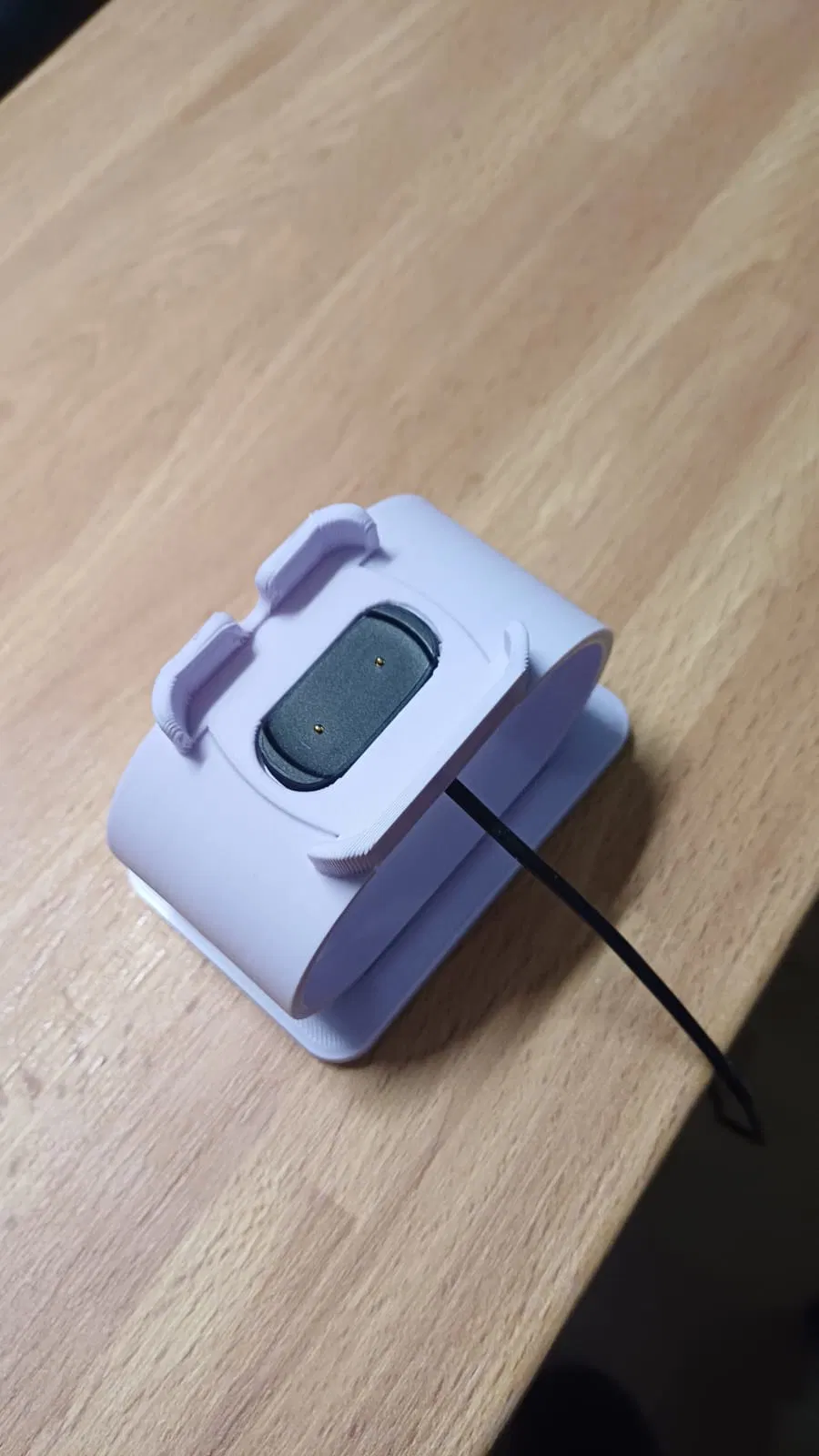 Cái đế sạc cho đồng hồ thông minh Amazfit A2017 này gồm 2 mảnh, mình dán lại với nhau bằng keo gì cũng được. Bên trong đế thì mình ấn cái đế sạc của đồng hồ vô là nó dính rồi đó.