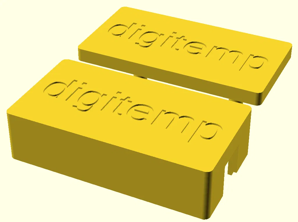 Tui đang xài mấy cái cảm biến nhiệt độ DS18B20 khắp các phòng với ứng dụng Digitemp trên server nhà. Mấy năm nay là xài qua cổng RS232 rồi mà nay là lúc nâng cấp lên USB. Mẫu này là cái vỏ cho bộ chuyển đổi USB sang 1-wire của Denkovi. Không cần ốc hay bất kỳ vật liệu nào khác ngoài cái vỏ in ra. Chỉ cần nối mấy cái thiết bị 1-wire của bạn vào rồi đóng cái vỏ lại. Nếu in đúng kỹ thuật thì hai mảnh nó sẽ dính với nhau. Sẽ hơi khó mở ra lại nha.