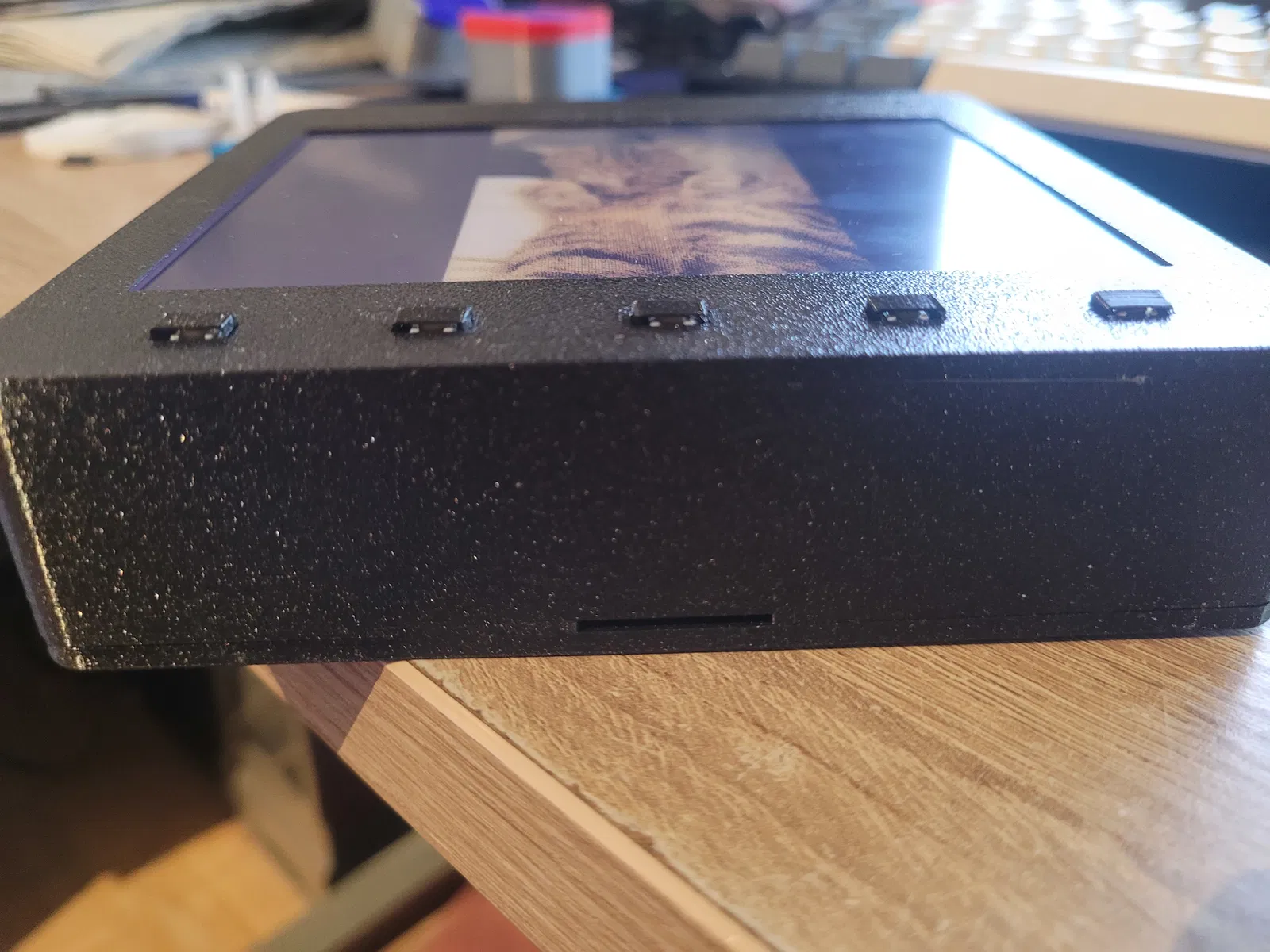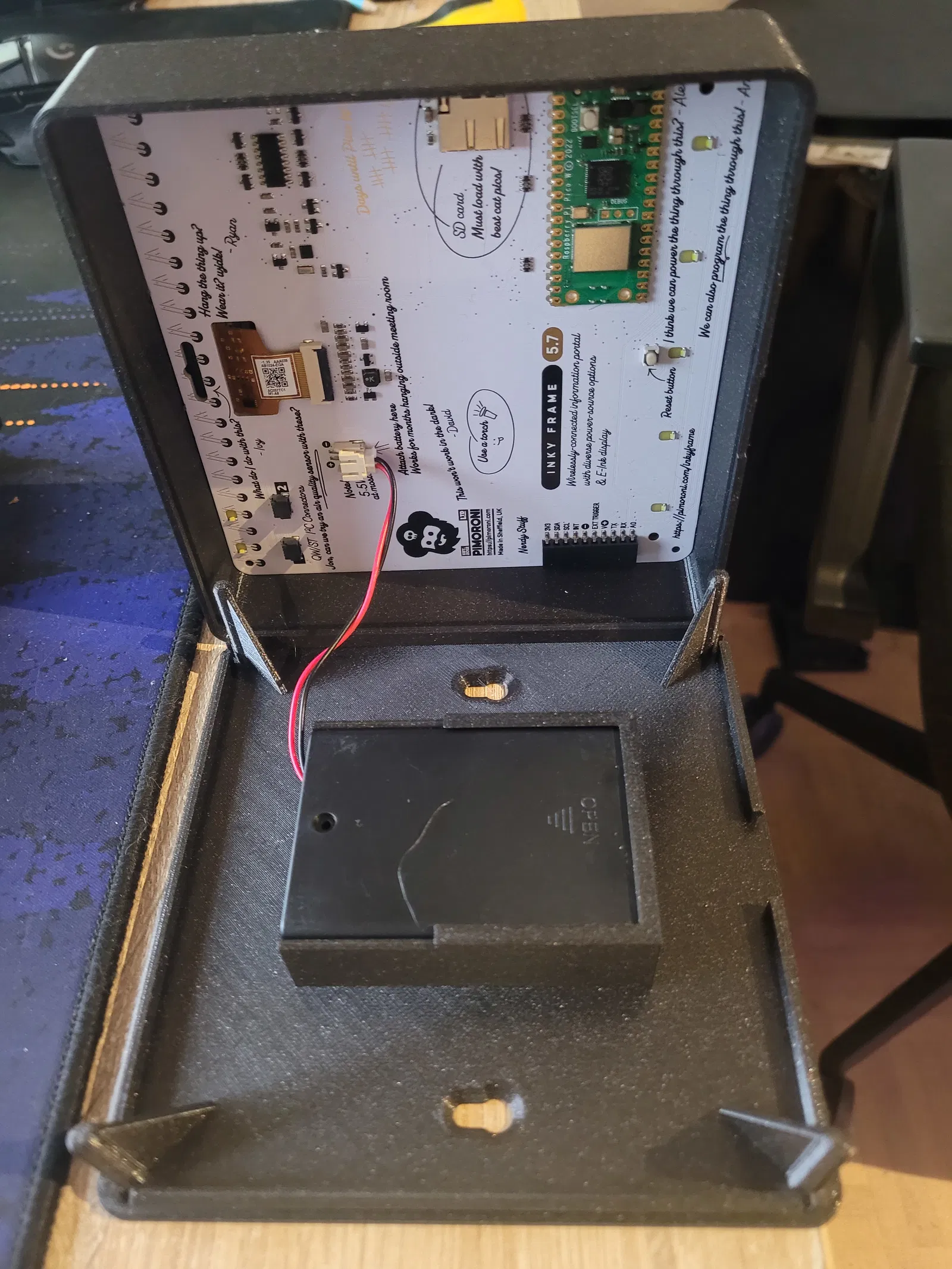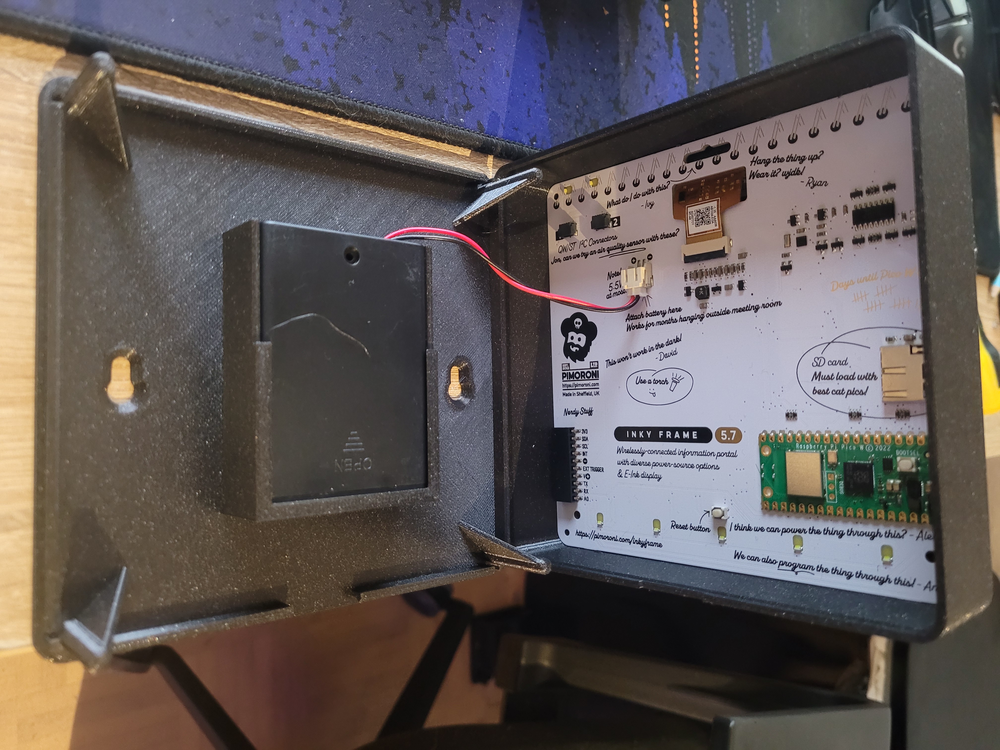 Xem thêm một case Inky Frame 5.7 mỏng hơn, có chỗ cho pin lipo tại: /3d-model/20628-truong-hop-khung-hinh-pimoroni
