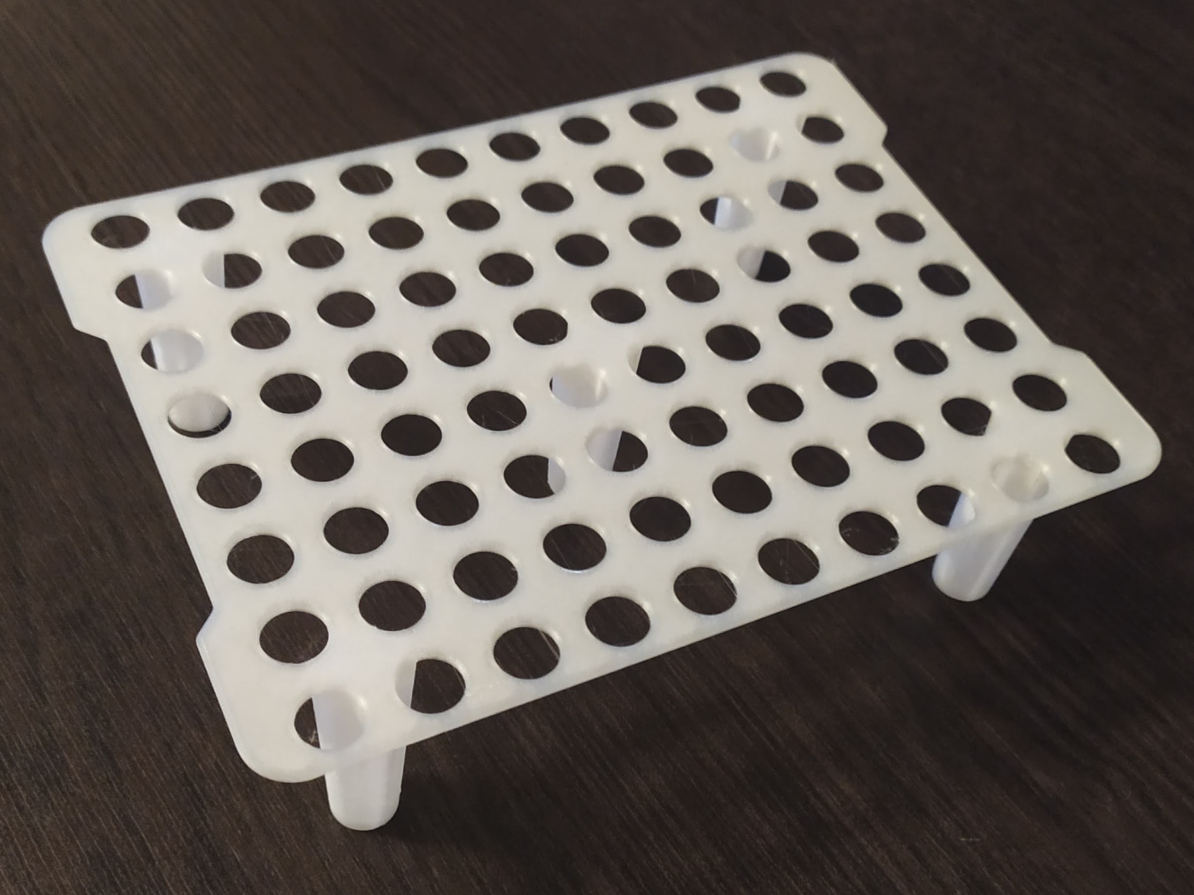 Chân giữa được làm ngắn lại để khớp với đáy thùng rác, nơi phần giữa cao hơn vài mm.