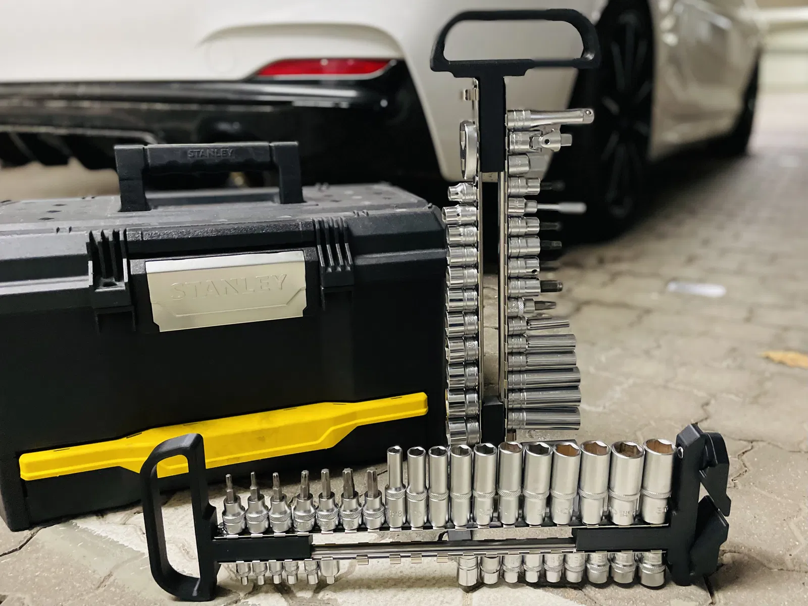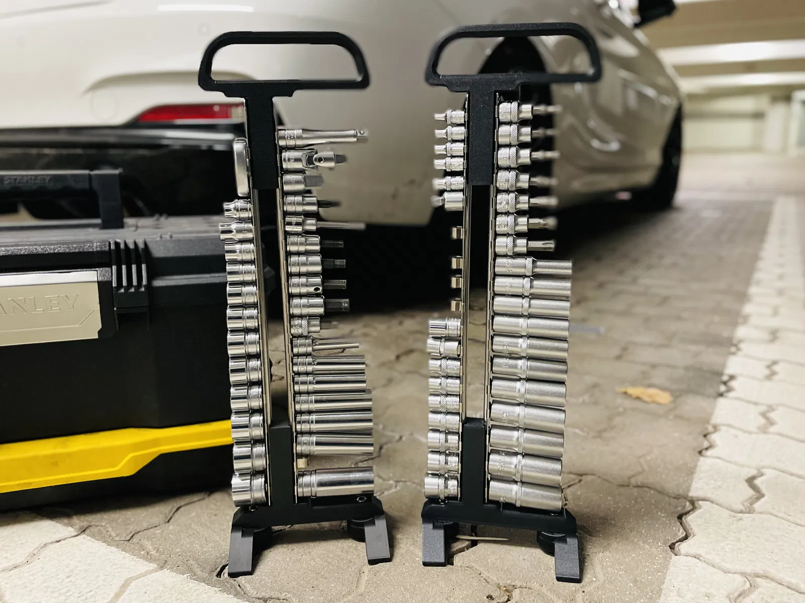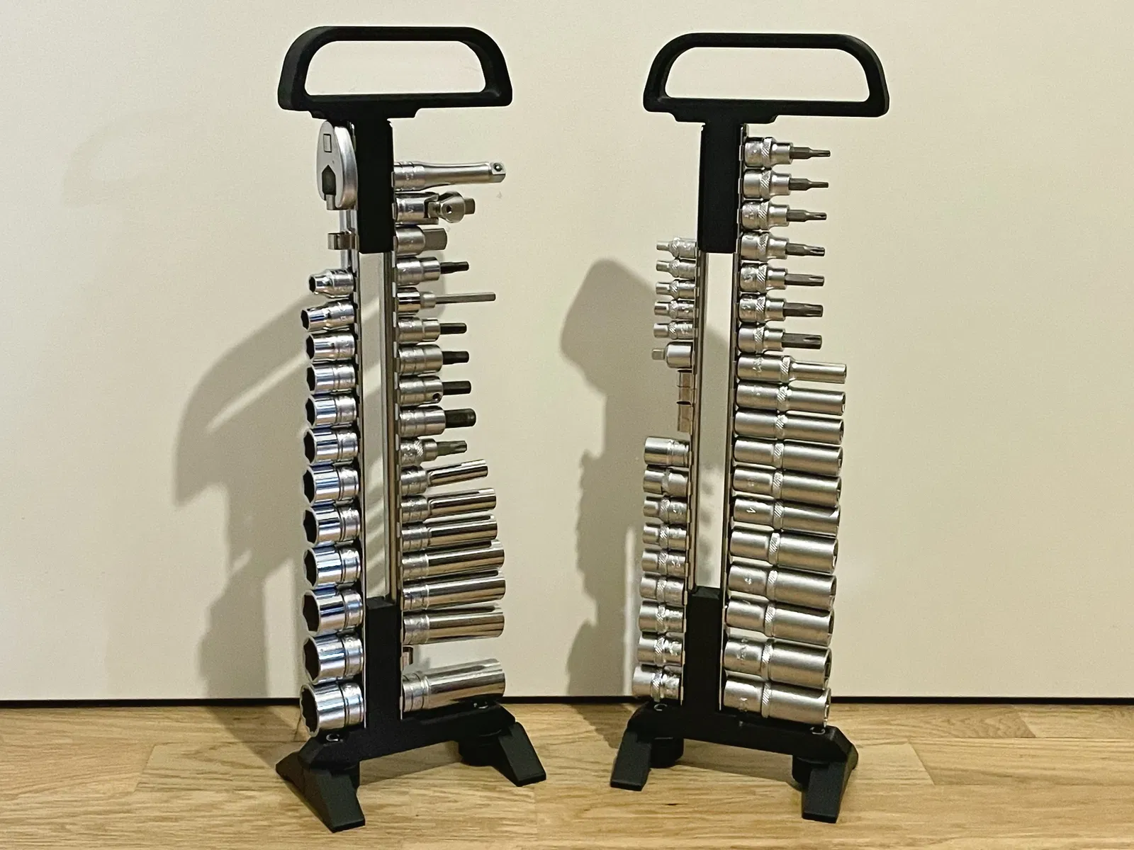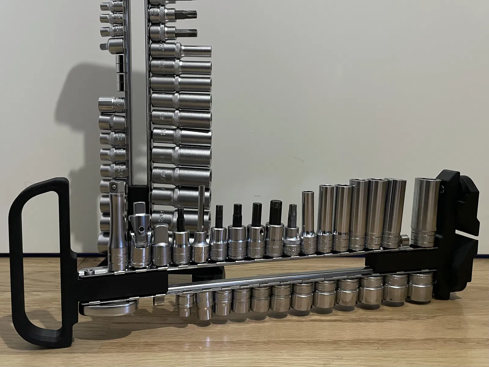 Giá đỡ thanh ray socket có tay cầm và chân gấp. Giúp bạn cất giữ các thanh ray socket gọn gàng và dễ dàng mang theo. Có thể điều chỉnh chiều dài theo nhu cầu và ổn định khi để ngang.