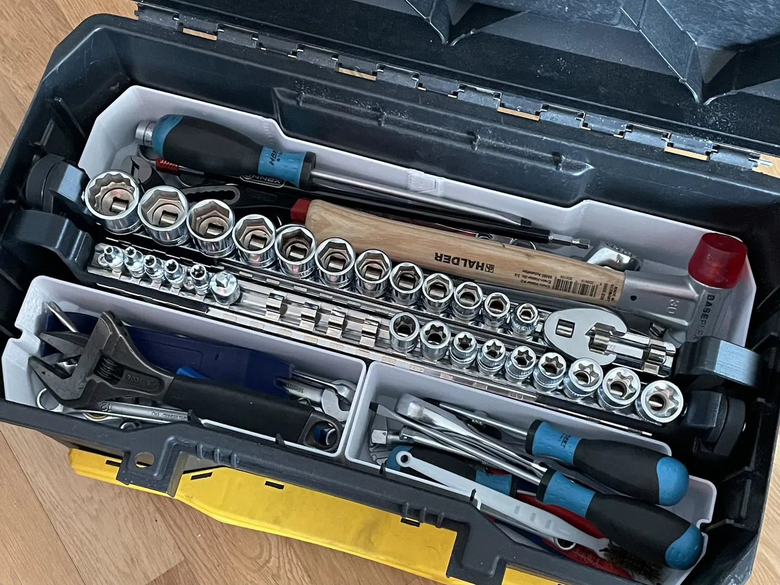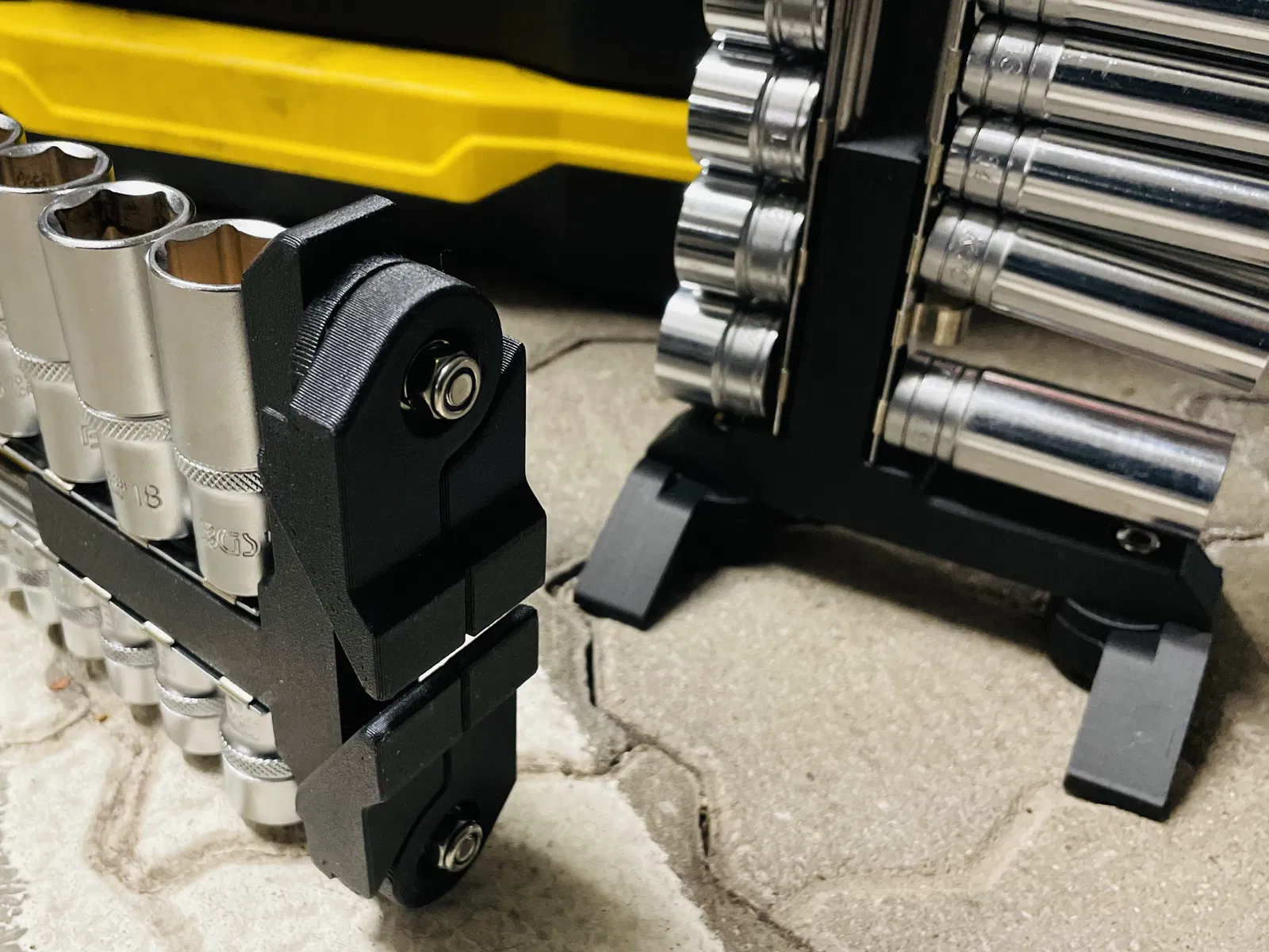Tui muốn có một cách đơn giản để làm cho các thanh ray socket của tui di động và cũng gọn gàng trong hộp dụng cụ của tui. Cái giá đỡ này kết hợp một cặp thanh ray socket, có thêm tay cầm và chân gấp.
