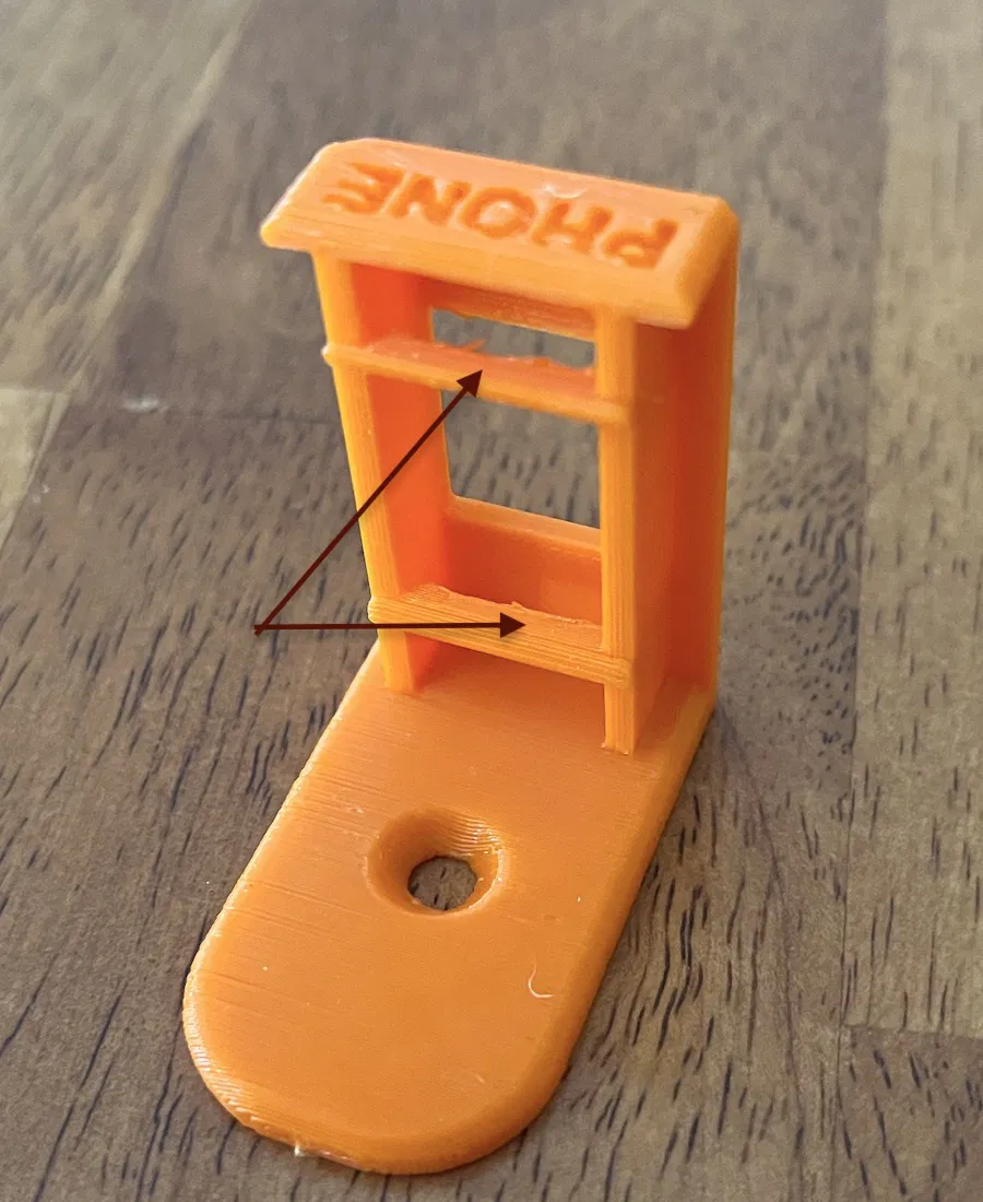 Tôi in bộ phận này ở chế độ Chất lượng 0.2mm, 3 lớp ngoài, và tôi đã in có và không có supports. Tôi đặt phần mở RJ45 trên khay in và phần tab vít ở trên không. Tôi đã thành công hơn khi sử dụng supports (với PolyLite PETG và PrusaSlicer trên MK3S+). Gần đây, tôi đã thử Prusa Black PETG và nó hoạt động tốt mà không cần supports: Tôi bật quạt luôn bật ở 80% và giảm nhiệt độ cho các lớp không phải lớp đầu tiên xuống: 230/85. Quạt dùng để cải thiện bridging. 2 bản in gần đây nhất đều rất tốt.