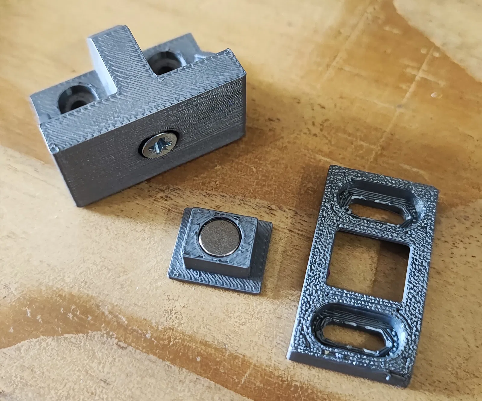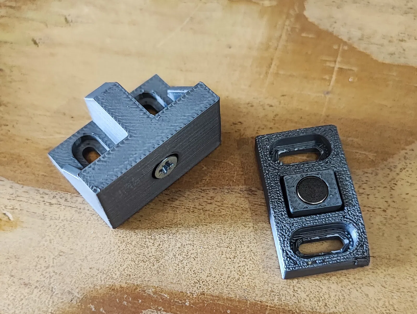 Cái chốt này dùng nam châm 3mm x 6mm (vì tui có sẵn mấy cục đó). Một bên của chốt được thiết kế để bạn có thể vặn một con ốc kim loại nhỏ hoặc dùng nam châm 3x6mm, nhưng mà xài nam châm cả hai bên thì nó sẽ hoạt động tốt hơn.