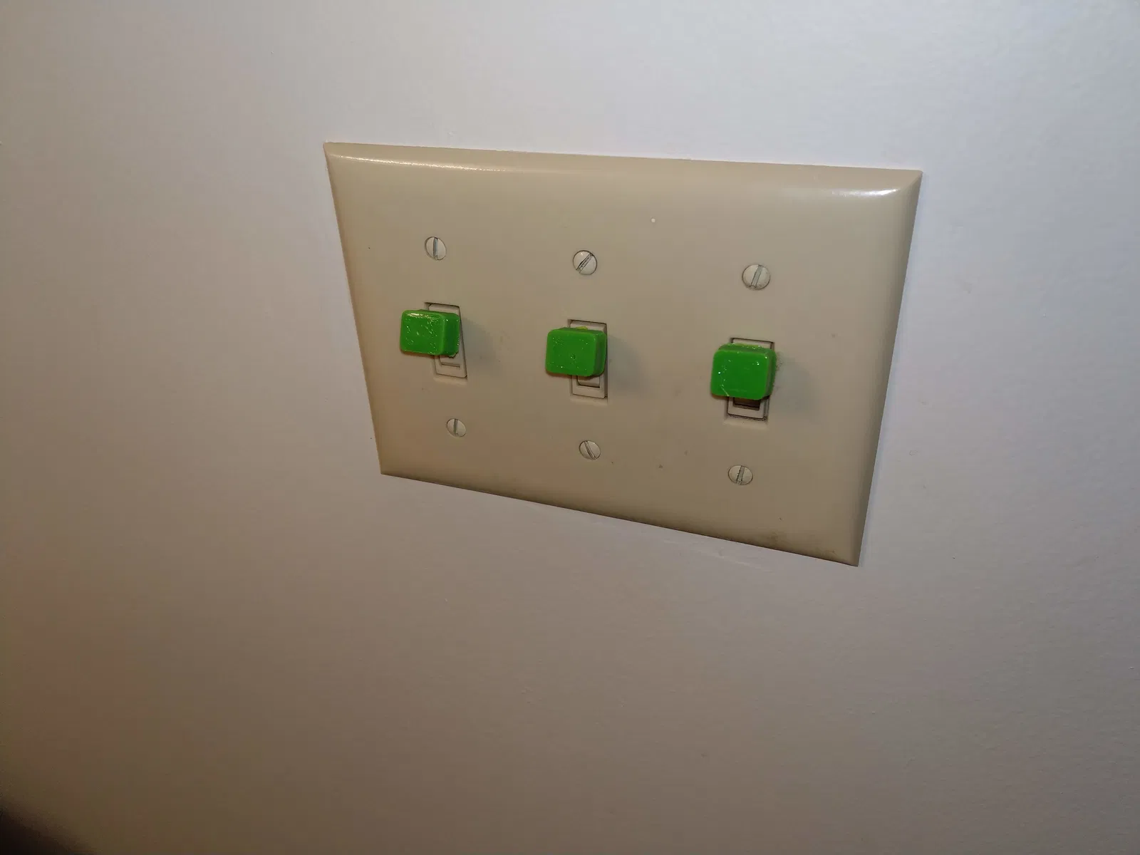 - Thanh gạt đa công tắc: In bằng PLA với kích cỡ phù hợp cho một, hai, hoặc ba công tắc; in trên bề mặt mịn. In đứng xuống như trong hình nha.