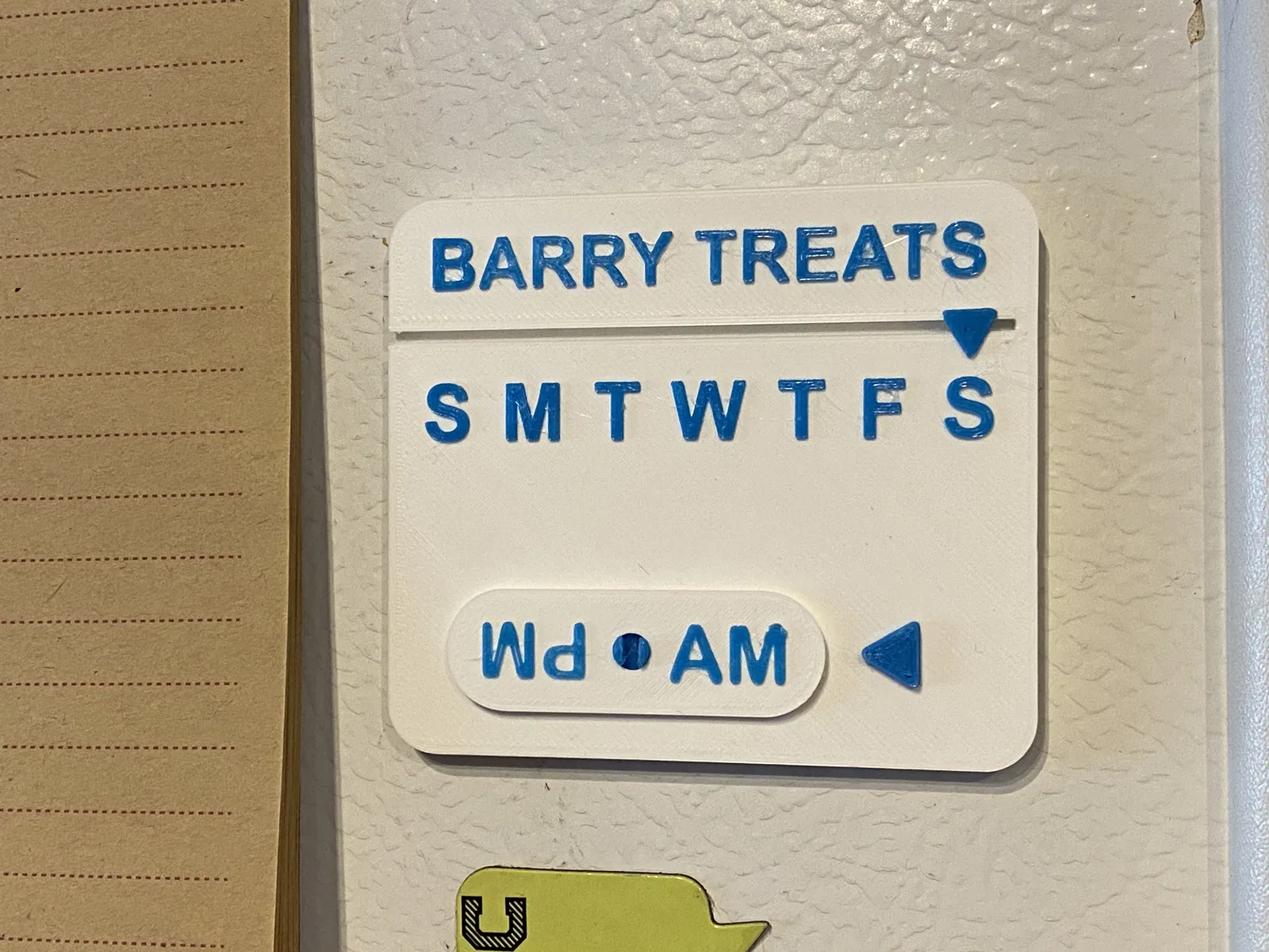 Cái này hay nè, nó là một cái nam châm để mình gắn lên tủ lạnh á, để mình nhớ coi lần chót cho con mèo Barry của mình ăn vụng là khi nào đó. Cái này là bản remix của người ta làm lại đó nha.